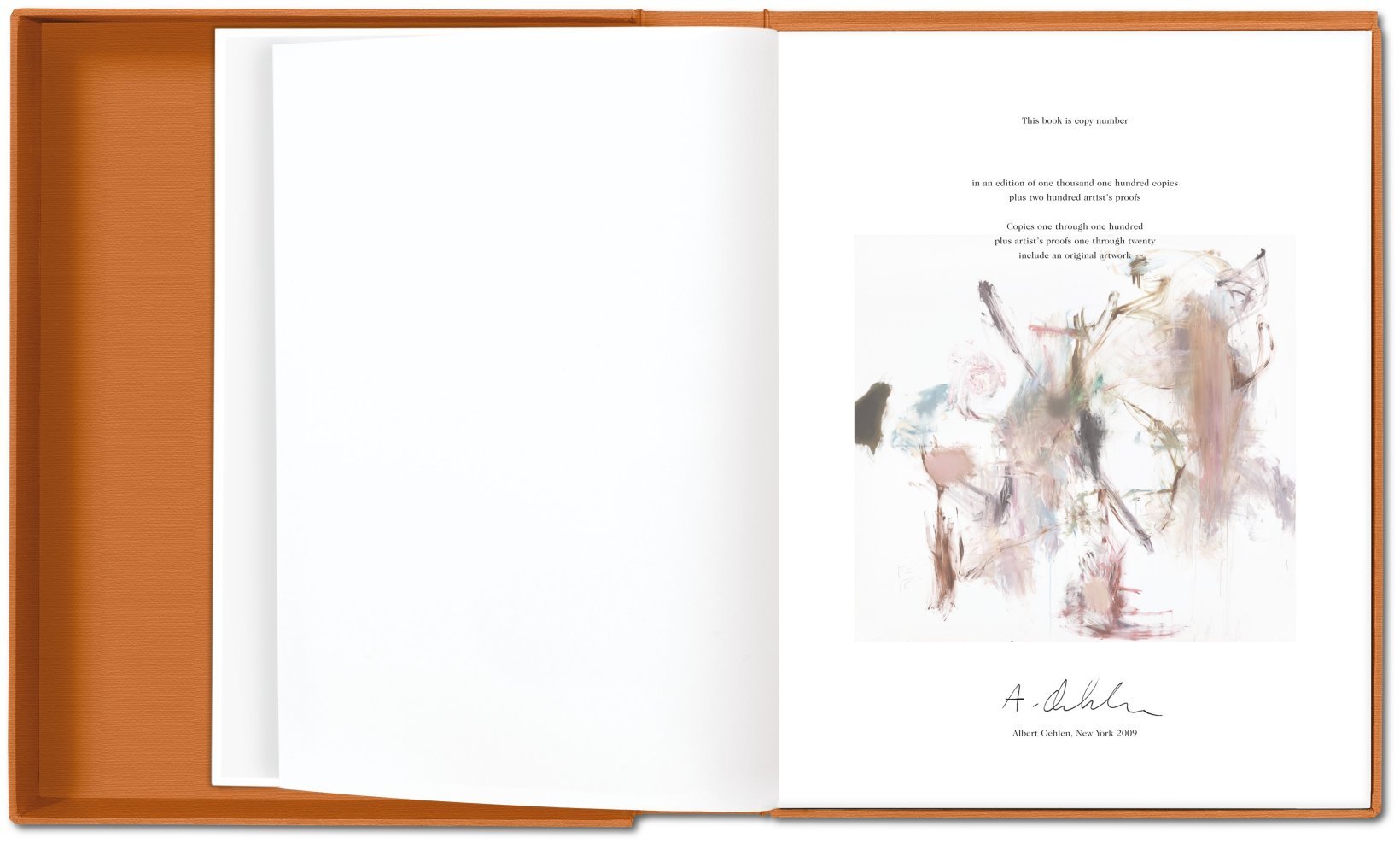 Art Edition, No. 1-100: Die Art Edition ist auf 100 nummerierte und von Albert Oehlen signierte Exemplare limitiert und enthält den signierten Digital Fine Art Print Untitled, 2009 auf Fotokarton im Format 50 x 65 cm, wobei jeder Druck vom Künstler von Hand überarbeitet wurde.