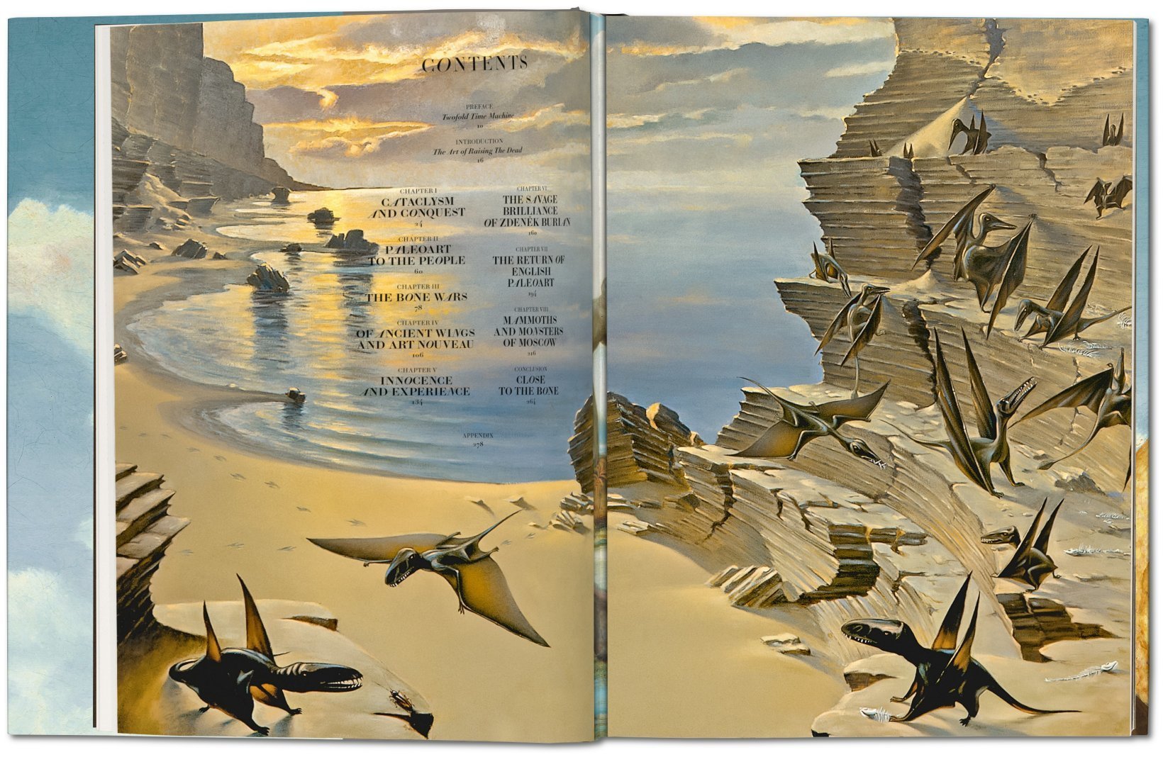 Vor über 66 Millionen Jahren von der Erde verschwunden, üben Dinosaurier seit ihrer Wiederentdeckung im 19. Jahrhundert eine ungeheure Faszination auf den Menschen aus. Kein Wunder, dass man früh den Wunsch verspürte, nicht nur Fossilien und Skelette betrachten zu können. Im Jahr 1830 malte ein englischer Wissenschaftler namens Henry De la Beche das erste Stück Paläokunst: eine überwältigende, herrlich makabre Darstellung prähistorischer Reptilien, die sich unter Wasser bekämpfen. Seitdem haben sich Künstler in aller Welt darangemacht, unsere Vorstellung einer prähistorischen Zeit mit Visionen von Dinosauriern, Wollmammuts, Höhlenmenschen und anderen Kreaturen zu illustrieren, in denen sie wissenschaftliche Fakten mit zügelloser Fantasie vermengen.Anhand von Werken aus der Zeit von 1830 bis 1990 zeichnet dieser Band die wundersame Geschichte der Paläokunst nach und macht augenfällig, wie sehr Zeitgeist, gesellschaftliche Verhältnisse und individuelle künstlerische Präferenzen das Bild der Urzeit bestimmten. So begegnen wir Dinos, die vom Fauvismus, vom Japonismus oder vom Jugendstil geprägt sind, viktorianischen und sowjetrussischen Sauriern, Pulp-Dinos, albtraumhaften Monstern und majestätischen Titanen, aufgespürt in großen Naturkundemuseen, obskuren Archiven und privaten Sammlungen.