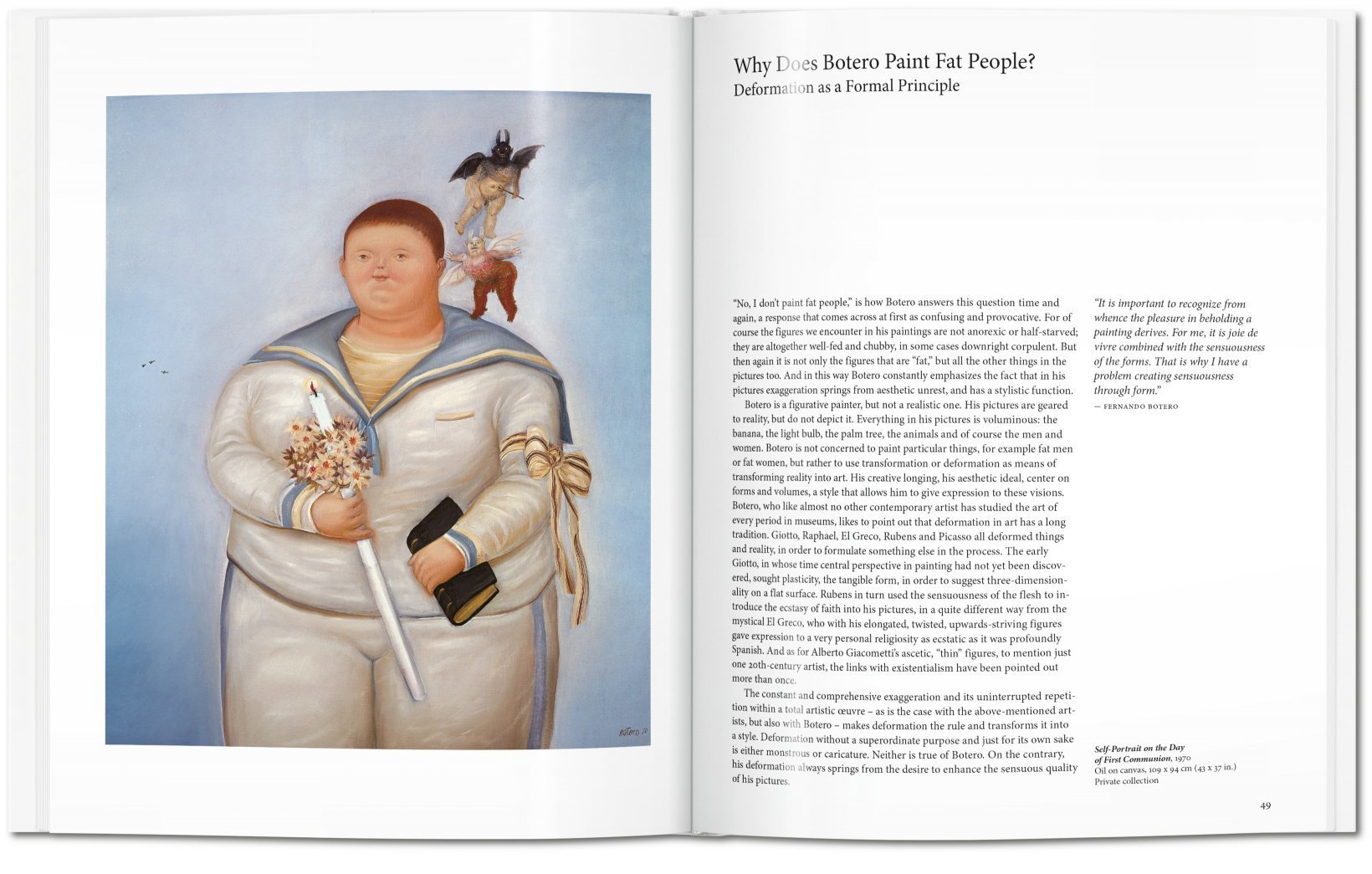 Oft skurril-humorvoll, kannte Boteros gänzlich unelitäre Kunst aber auch ernste Themen, etwa in der Auseinandersetzung mit der von Militärdiktatur und Drogenkriegen geprägten Geschichte seines Heimatlandes Kolumbien oder seinem Abu-Ghraib-Zyklus, der die Folterpraktiken der USA im Irak aufgreift. Diese Einführung verfolgt Boteros Werdegang von den frühesten Tierkarikaturen bis hin zu seinen mächtigen Bronzeskulpturen, die sich heute an vielen zentralen Orten auf der ganzen Welt finden, an der Park Avenue in New York ebenso wie an der Champs-Élyssées oder auf dem Boat Quay in Singapur.