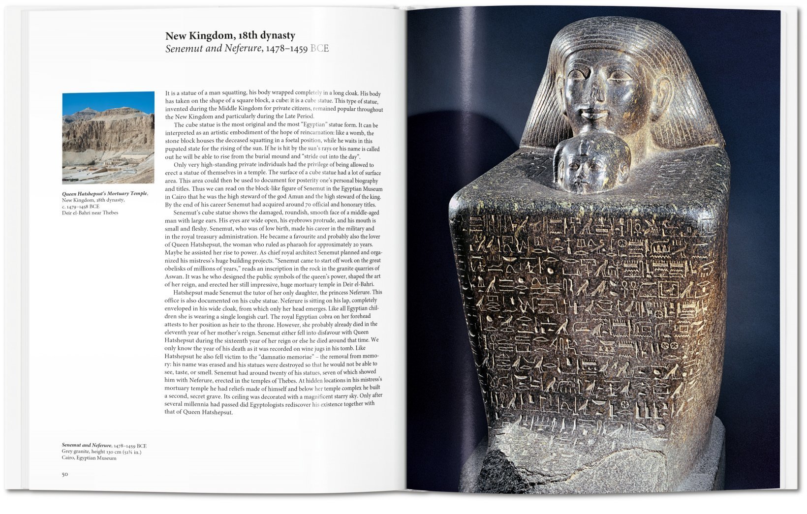 Dieser Band zeigt unter anderem eine Statue des Djoser, einen Pharao der 3. Dynastie, ein Holzrelief des hohen Beamten und Heilkundigen Hesi-Re aus Zedernholz, ein Relief vom Kalksteinsarkophag der Königin Aschait, die Sphinx von Sesostris III., eine Statue des Cherihotep aus der 12. Dynastie, Reliefs aus dem Tempel zu Karnak, den Sarkophag der Königin Hatschepsut, Wandmalereien aus Theben, eine Statue der löwengestaltigen Göttin Sachmet, eine Statue der Königin Teje, Büsten von Echnaton (Amenophis IV.) und seiner Gattin Nofretete, die goldene Totenmaske von Tutanchamun und zahlreiche weitere kostbare Artefakte.