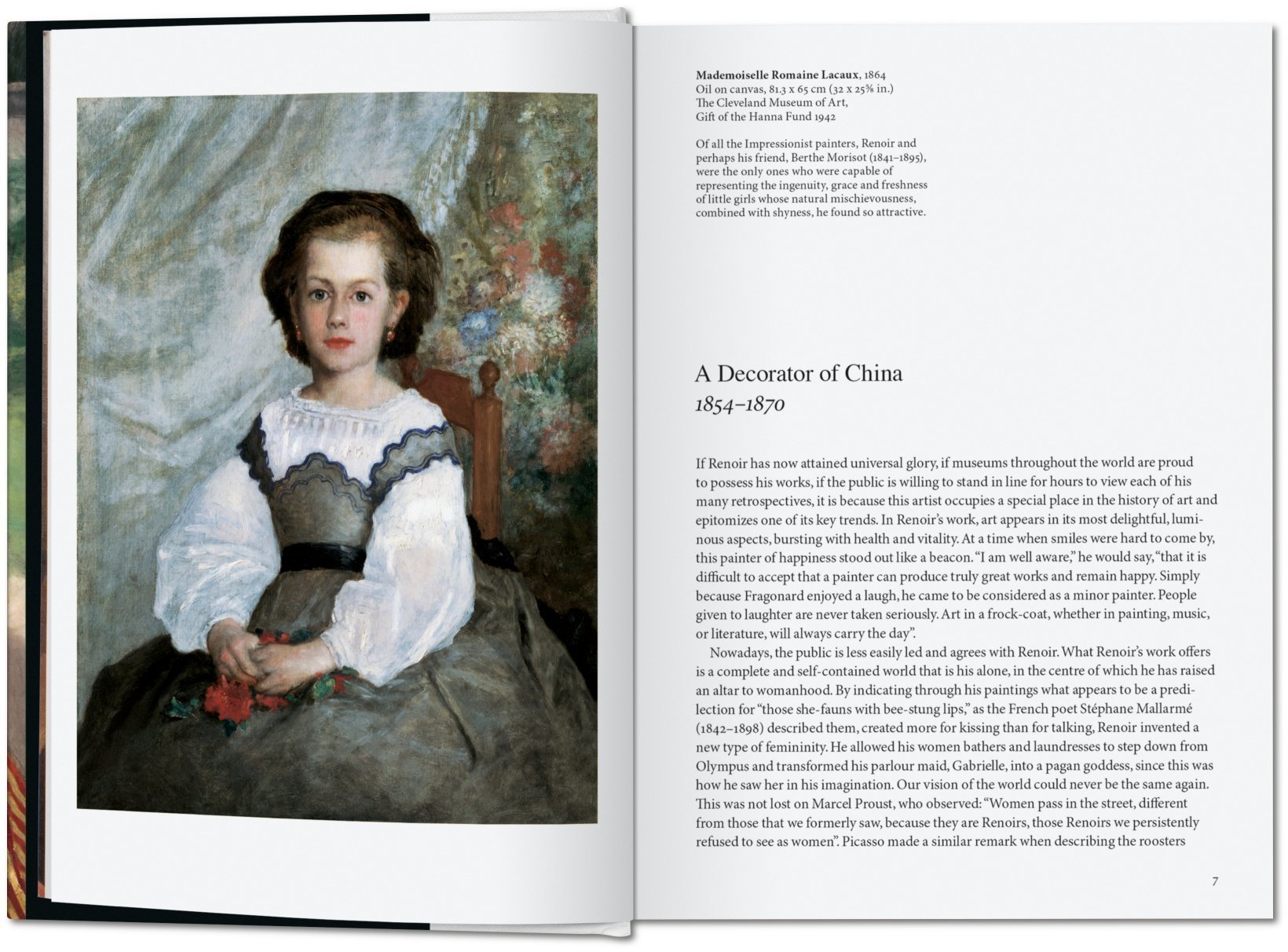 In einem aufschlussreichen Text, der die Karriere des Künstlers und seine stilistische Entwicklung nachzeichnet, zeigt Gilles Néret, wie Renoir in seinen Alltagsgöttinnen mit ihren prallen Formen, runden Hüften und Brüsten die gemalte weibliche Form neu erfand. Seine letzten Gemälde, vor allem der Badenden-Serie, geprägt von der Rückkehr zum simplen Vergnügen am weiblichen Akt, bilden seine innovativste und stilistisch einflussreichste Phase, die später sogar Matisse und Picasso inspirierte.