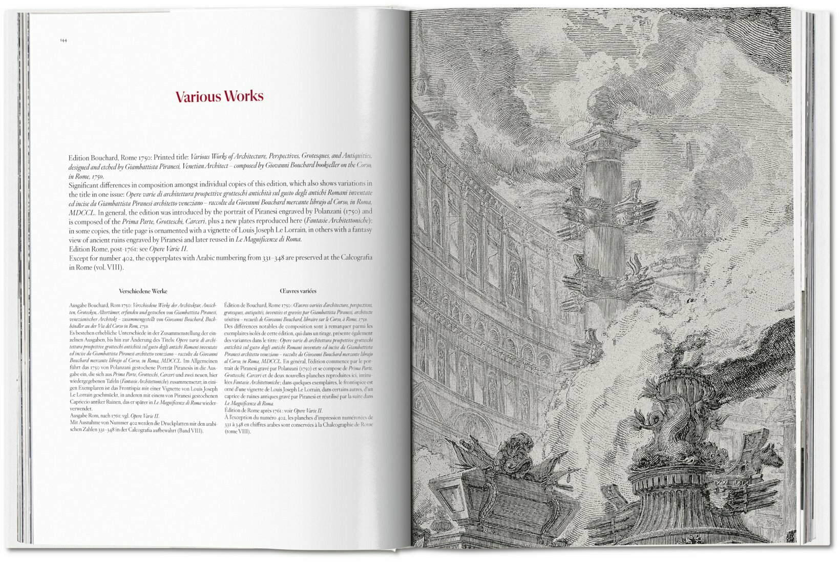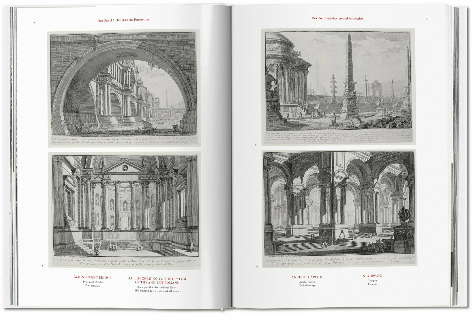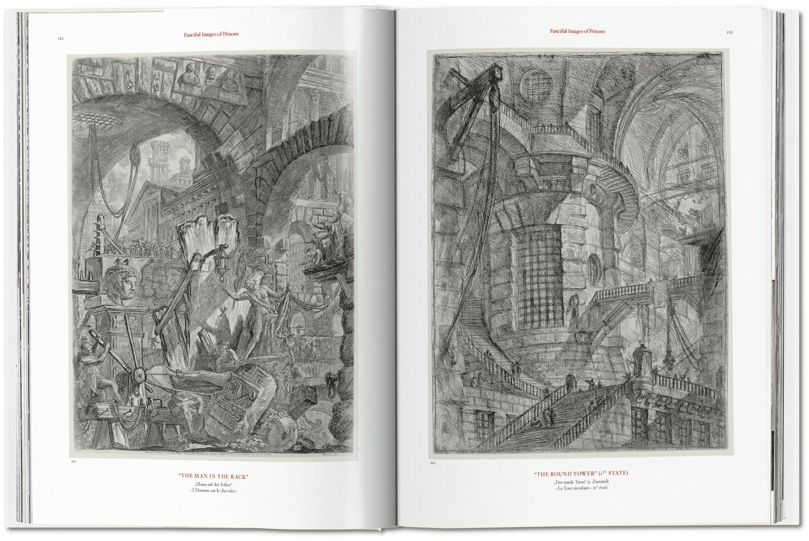 Die filigranen und detailreichen Zeichnungen von Haftanstalten basieren eher auf damaligen Bühnenbildern als auf der Trostlosigkeit tatsächlicher Verließe. Sie transzendieren die architektonische Realität und spielen mit Perspektive, Licht und Maßstab. Da existieren Treppen auf mehreren Ebenen gleichzeitig, weite Gewölbedecken reichen scheinbar bis in den Himmel, die Grenze zwischen Innen und Außen verschwimmt. Aufgrund des niedrigen Blickwinkels und der kleinen fragilen Figuren wirken diese Gefängnisse wie monströse Megastädte der Eingeschlossenheit und werden bis heute als Meisterwerke eines existenzialistischen Dramas gesehen.