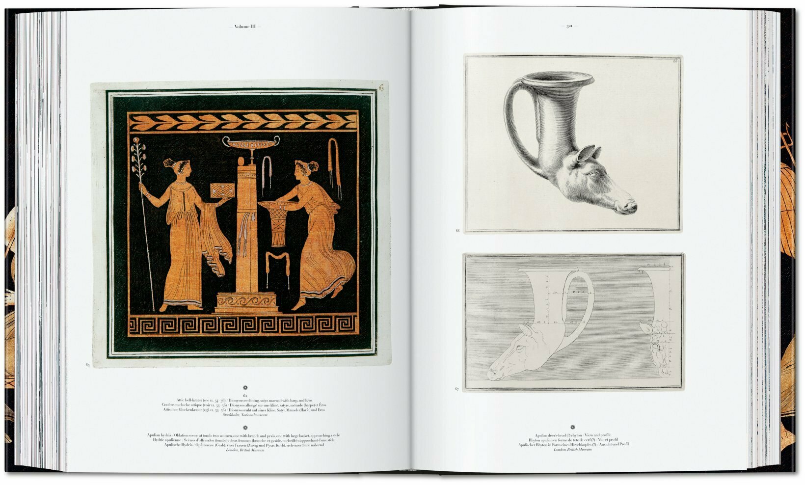 Sir William Hamilton, Vulkanologe und Gesandter der Britischen Botschaft in Neapel, trug eine unschätzbare Sammlung altgriechischer Vasen zusammen, die er 1772 ans British Museum in London verkaufte. Bevor die Stücke nach England verschifft wurden, beauftragte er Pierre-François Hugues d’Hancarville, einen abenteuerlustigen Kunstkenner und -händler, die Vasen in Bild und Wort zu dokumentieren. Daraus entstand ein Meisterwerk des Klassizismus, das TASCHEN mit diesem hochwertigen Nachdruck wiederbelebt.