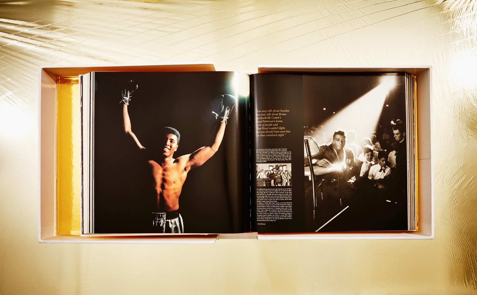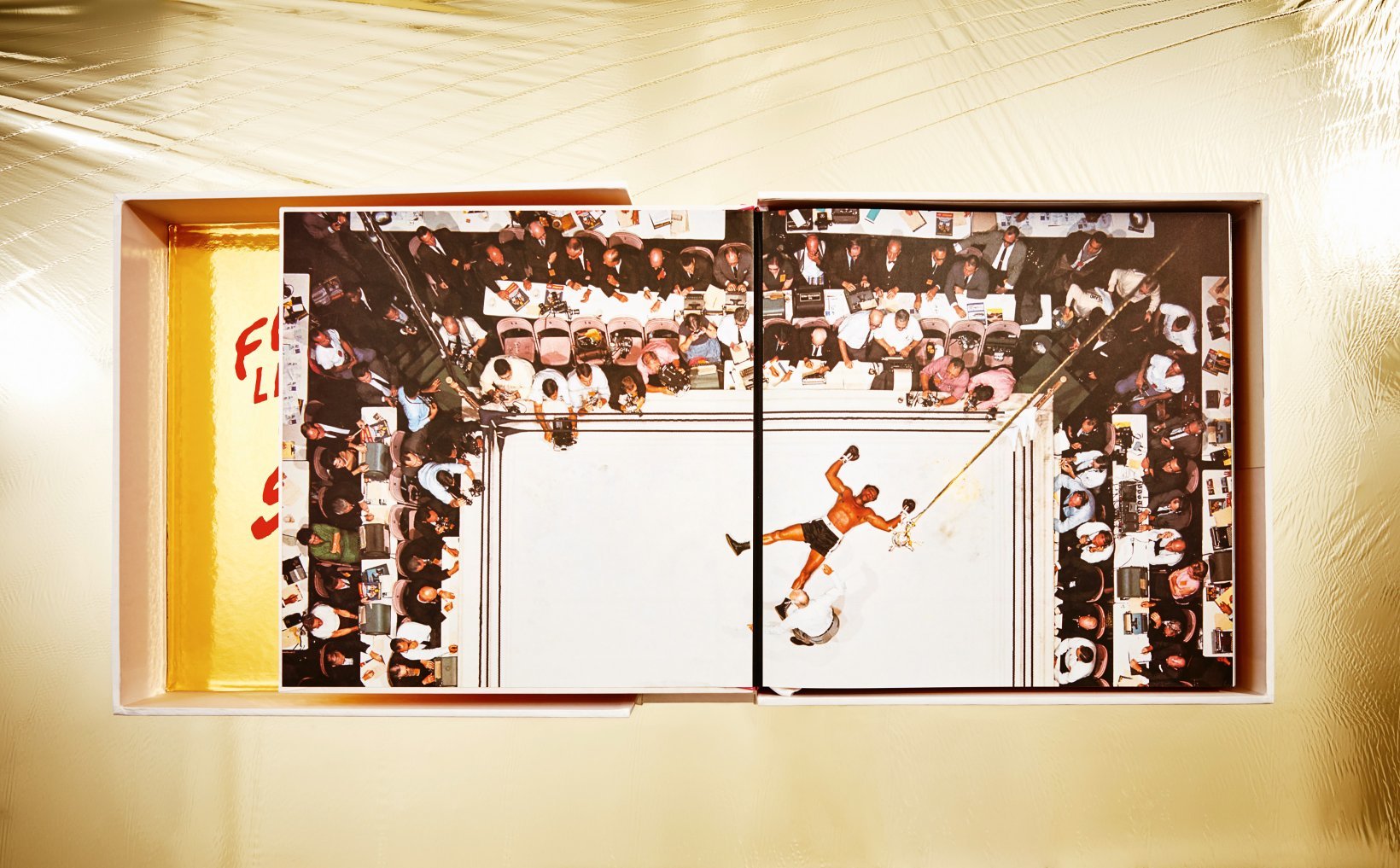 - Jedes Exemplar wird in einer in Seide gebundenen Box geliefert, die Neil Leifers Kultfoto von 1966 ziert: Ali gegen Williams.