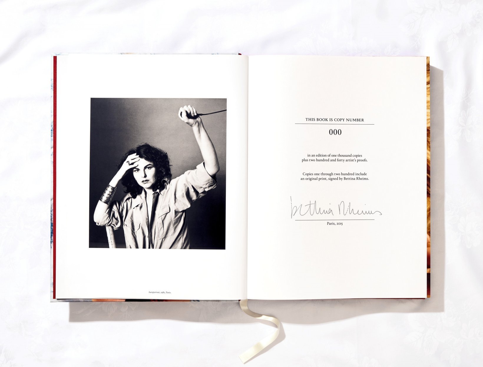 Die Limited Art Edition besteht aus 100 signierten und nummerierten Exemplaren. Jedem Exemplar beigelegt ist der Abzug Marthe en guêpière, Februar 1987, Paris, Inkjet-Print auf Harman-Glanzpapier, auf der Rückseite von Bettina Rheims signiert und datiert (Nr. 101–200).Auch erhältlich in einer weiteren Art Edition mit dem C-Print Lara, January 2008, Paris, signiert von Bettina Rheims (Nr. 1–100) sowie in einer Collector’s Edition (Nr. 201–1.000).