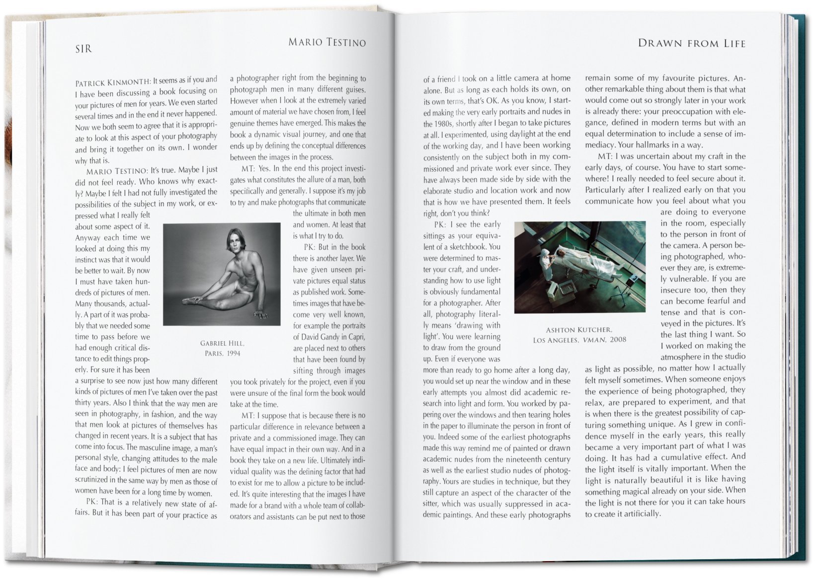 In SIR zeigt Starfotograf Mario Testino über 300 Aufnahmen aus seinem immensen Archiv, die Männer und Inszenierungen von Männlichkeit in all ihren zeitgenössischen Facetten illustrieren – Dandys und Gentlemen, Machos und androgyne Jünglinge, VIPs und namenlose Beaus, Aufnahmen zwischen souveräner Zwanglosigkeit und narzisstischer Selbstinszenierung.Unter den Porträtierten finden sich u.a. Brad Pitt, George Clooney, Jude Law, Colin Firth, David Beckham, David Bowie, Mick Jagger und Keith Richards in inniger Umarmung und doppeltem Faltenwurf, oder Josh Hartnett, der in seiner Fotostrecke für VMAN von 2005 wie ein Wiedergänger von Helmut Berger in Viscontis Die Verdammten anmutet und unterstreicht, wie selbstverständlich heute das Spiel mit Geschlechteridentitäten geworden ist.