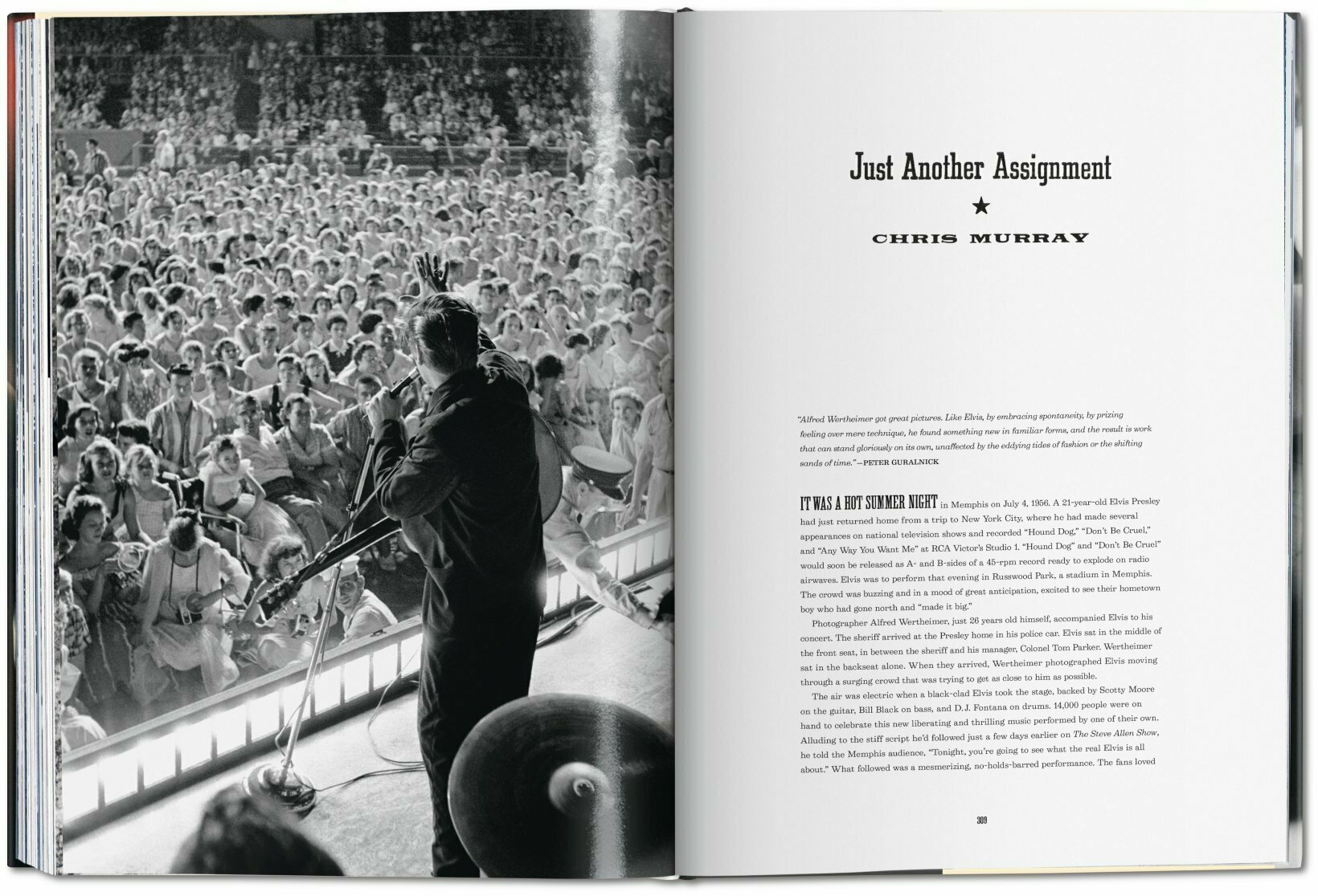 „Elvis who?“, fragte Alfred Wertheimer, als er Anfang 1956 von einer PR-Agentin der Plattenfirma RCA Victor beauftragt wurde, einen aufstrebenden Sänger aus Memphis zu fotografieren. Wertheimer ahnte nicht, dass dies der Job seines Lebens werden würde: Der damals 21-jährige Elvis Presley war gerade dabei, in den Olymp der Popmusik aufzusteigen.Wertheimer folgte Elvis wie ein Schatten und machte damals fast 3000 Aufnahmen, die das Porträt eines Künstlers auf dem Sprung zum Weltruhm ergeben. Unerreicht in ihrer Intimität und Bandbreite, verewigen diese Bilder einen jungen Mann, der dabei war, Geschichte zu schreiben.