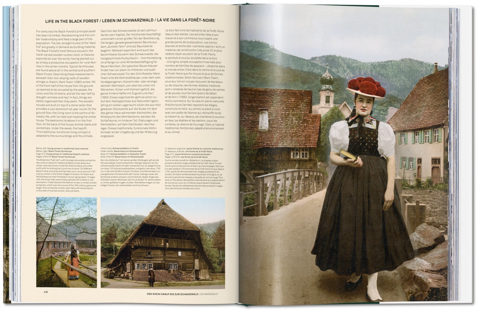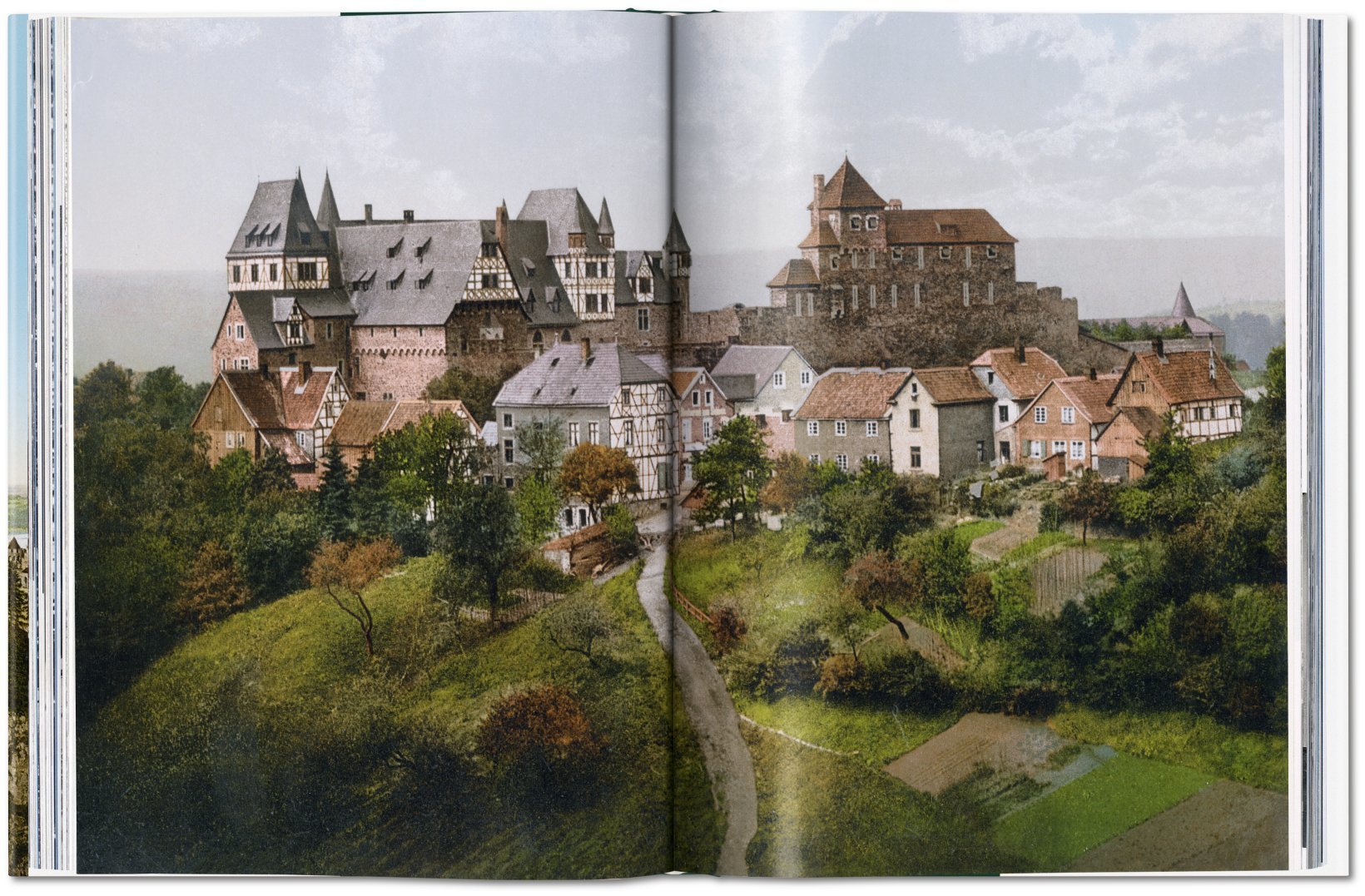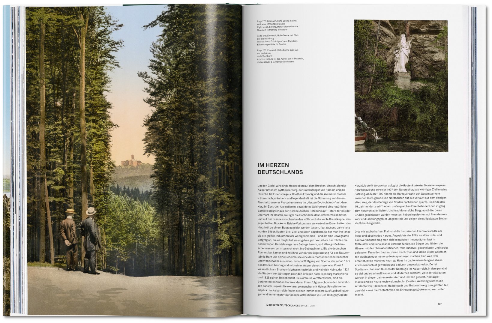 Deutschland um 1900 – das anbrechende 20. Jahrhundert scheint es gut mit den Deutschen und dem Wilhelminischen Reich zu meinen. In den emporwuchernden Mietskasernen für das neue Industrieproletariat der Großstädte mag es gären, doch auf den Ringstraßen der Großstädte flaniert man stolz vor bürgerlichen Prunkbauten, die Wirtschaft floriert, Adel und Militär genießen uneingeschränktes Sozialprestige, und die Mehrheit der Bevölkerung verehrt den Kaiser und übt sich im Untertanengeist. Wilhelm II. liebt seine Dackel, die Marine und Weltmachtträume, die bis China reichen. In Übersee reifen die Kolonialwaren, der Rhein ist romantisch und Elsass-Lothringen deutsch. Auf den rund 800 Bildern dieses Bandes zeigt sich Deutschland überwiegend so, wie es sich gerne sah: selbstbewusst, glanzvoll, patriotisch, bodenständig, konservativ, aber auch fortschrittsgläubig und – wenn man es sich leisten konnte – mondän.Wie schon bei dem TASCHEN-Bestseller America 1900 handelt es sich bei diesen Bildern um besonders schöne Beispiele für das historische Photochrom-Verfahren, eine Drucktechnik, die Schwarz-Weiß-Fotografien Farbe verlieh. Die Reise führt von den Lustschlössern Ludwigs II. in den bayerischen Alpen bis in die Seebäder an Nord- und Ostsee durch ein Deutschland, das gerade einen Modernisierungsschub vom Agrarstaat hin zum Industriestaat erlebt, aber noch stark seinen traditionellen Wurzeln verhaftet ist. Bilder von mittelalterlichen Städten, ländlichem Brauchtum und als erhaben wahrgenommenen Landschaften stehen so einträchtig neben Darstellungen technischer Neuerungen und moderner Gründerzeitboulevards. Das Porträt eines Landes im Aufbruch.