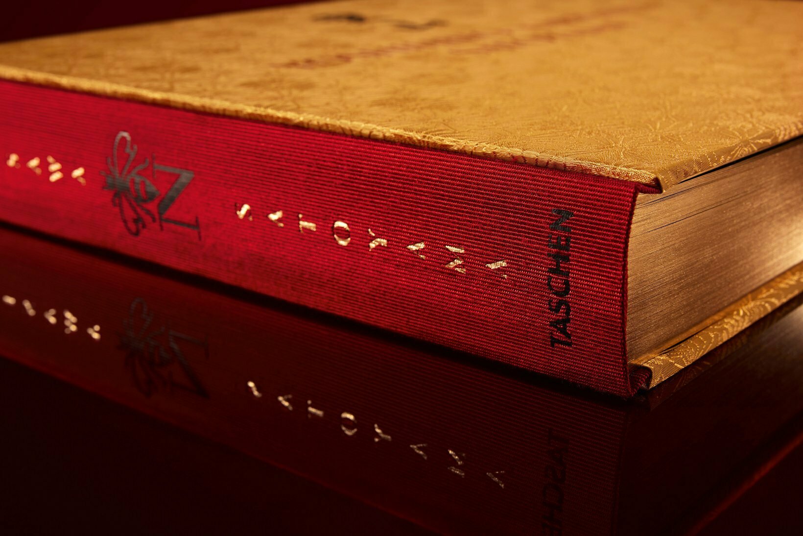 Hardcover, 6-farbiger Druck mit Lack, mit Bodonian-Einband aus zwei verschiedenen, aus Japan importierten Stoffen, Buchblock mit vergoldeten Kanten, 40 x 33 cm, 416 Seiten; in einer glänzend lackierten, mit Naturleinen ausgekleideten Box, Gesamtgewicht 15 kg