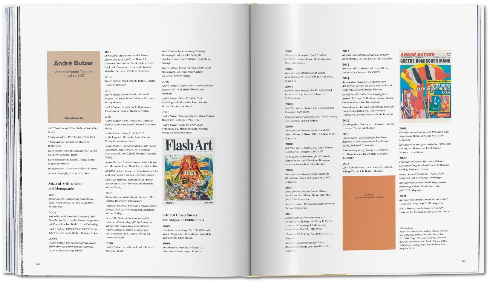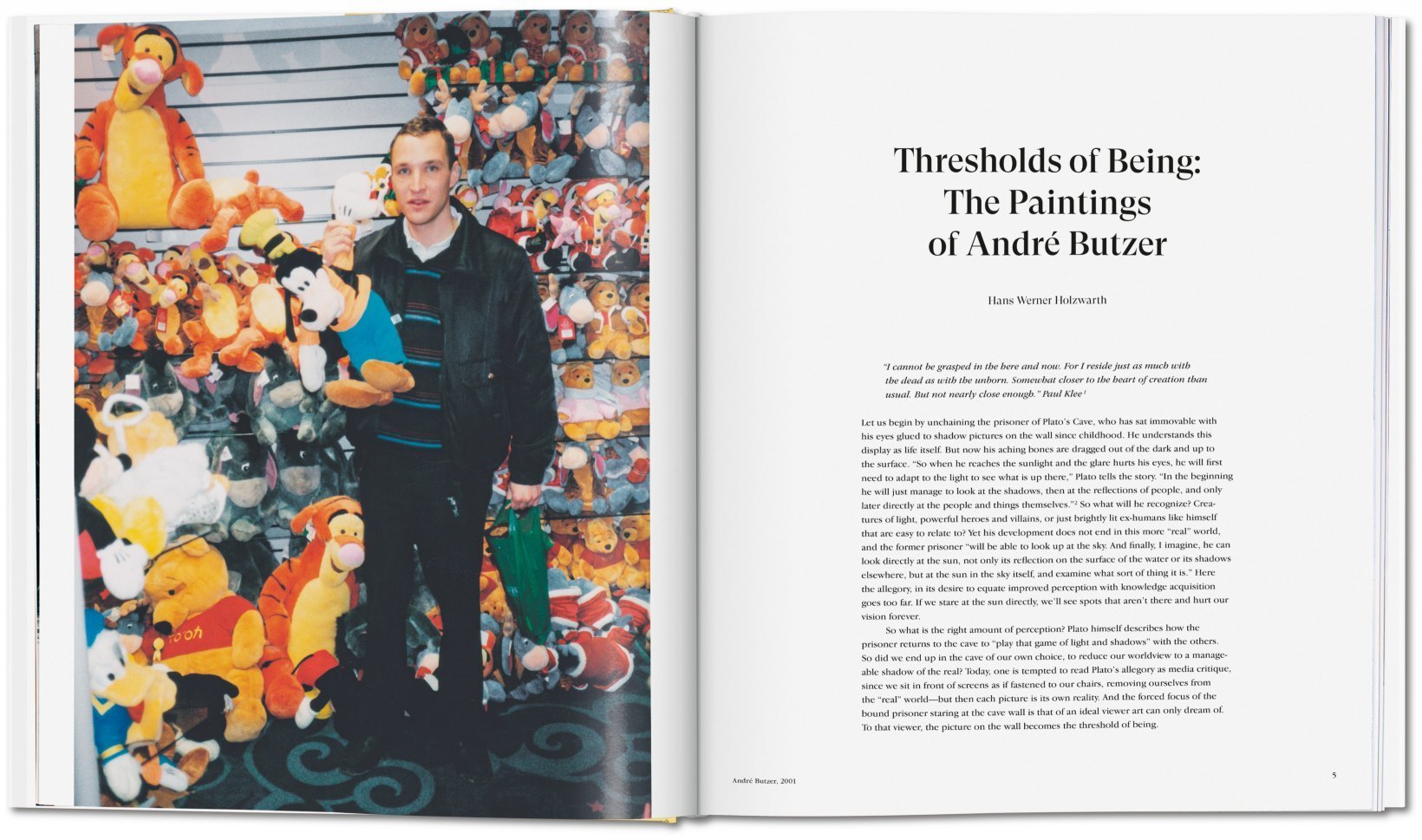 full range of Butzer’s oeuvre from 1999 to 2021, the works’ progression gaining an almost musical drive of development, return, and new beginnings. The plates are interspersed with contemporary quotes from the artist that illuminate his idiosyncratic stance as a background to the work, as well as photos from his archives. The introductory essay, written by Hans Werner Holzwarth, investigates the different work phases, and places the artist’s ideas in a wider discourse of abstraction and figuration after the end of either genre. And, most importantly, the book’s pristine, huge-format illustrations fully evidence the finesse as a colorist that place this artist among the internationally most recognized painters of his generation.