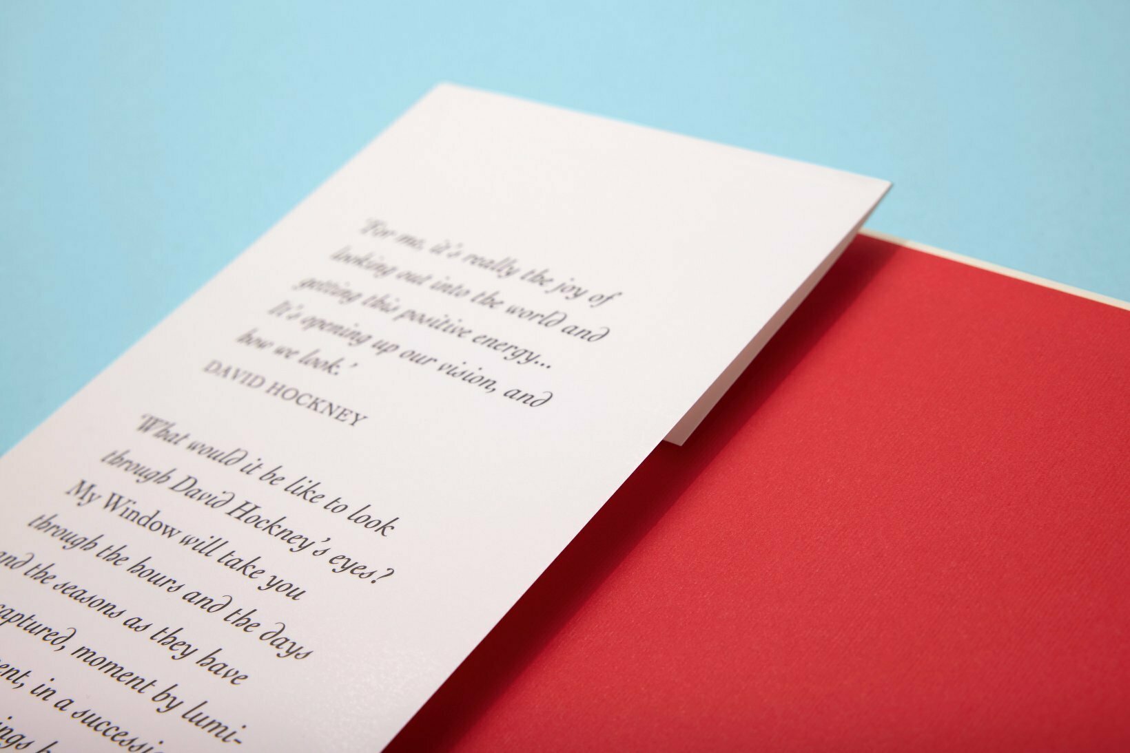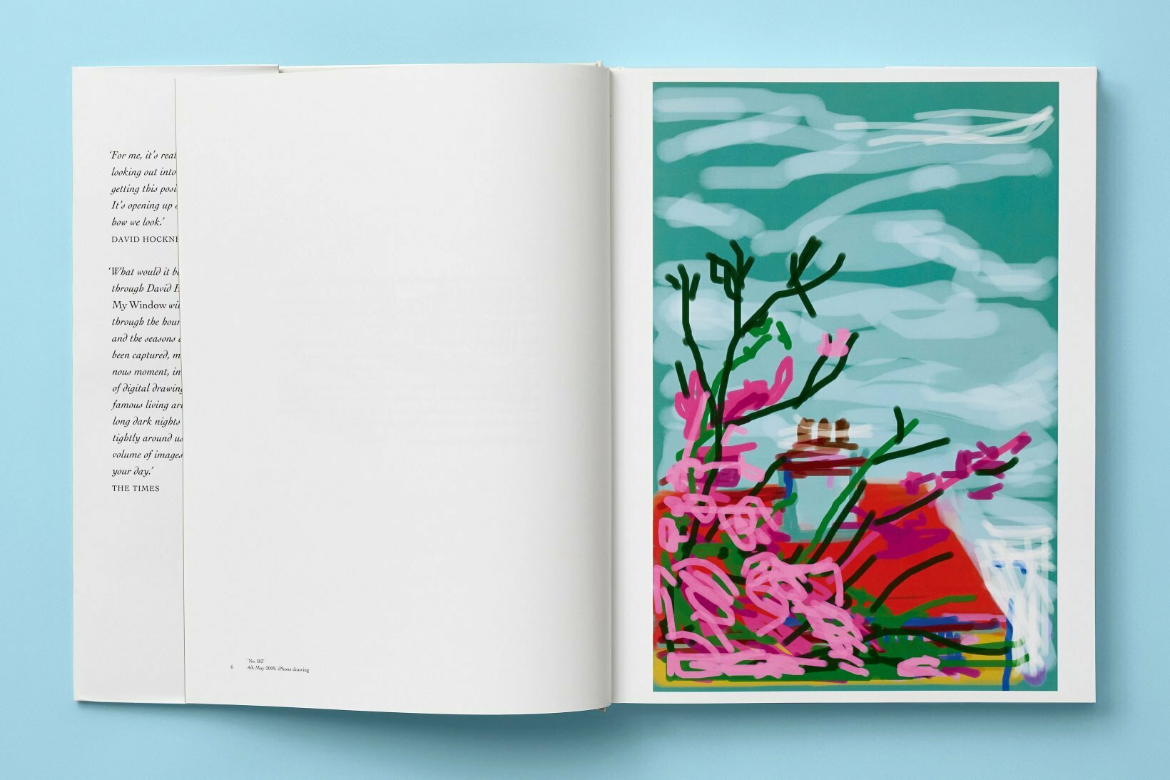 Each image in this book captures a fleeting moment seen through a window in Hockney’s Yorkshire home: from vibrant sunrise and lilac morning sky to peaceful night-time impressions or the sudden arrival of spring. Fascinating details reveal drops on window panes, distant lights in the night, reflections on vases or an abundance of varied window-sill vegetation. In