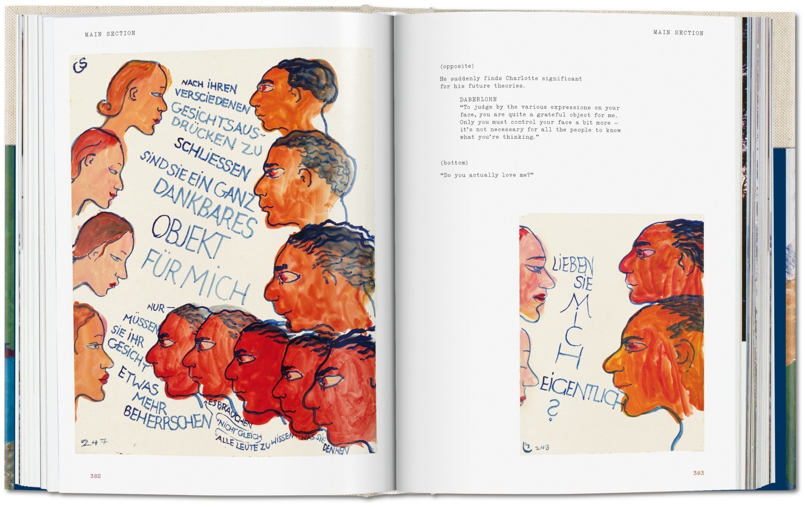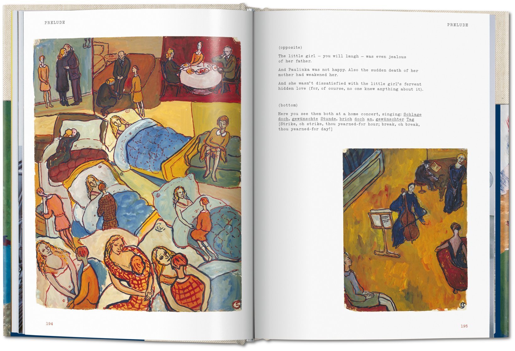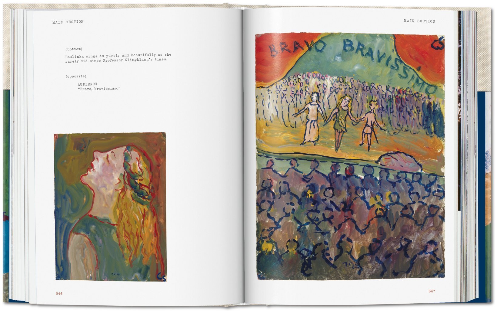 Divided into three sections, the gouaches unveil a vivid self-portrait spanning across all facets of Charlotte's existence: from a complicated family life, marked by the suicides of nearly all female relatives; growing up in Berlin; her close relation to singing teacher Alfred Wolfsohn; the rise of the Nazis; to her exile to France in 1939. Throughout, the artist challenges these destructive forces by deploying playful pseudonyms and fantastical elements alongside emotional candor, remarkable observation, and a meticulous visual memory. Her film strip-like sequences are interspersed not only with words but also musical suggestions, making Life? or Theater? the storybook for a whole musical, years before the heyday of that genre.