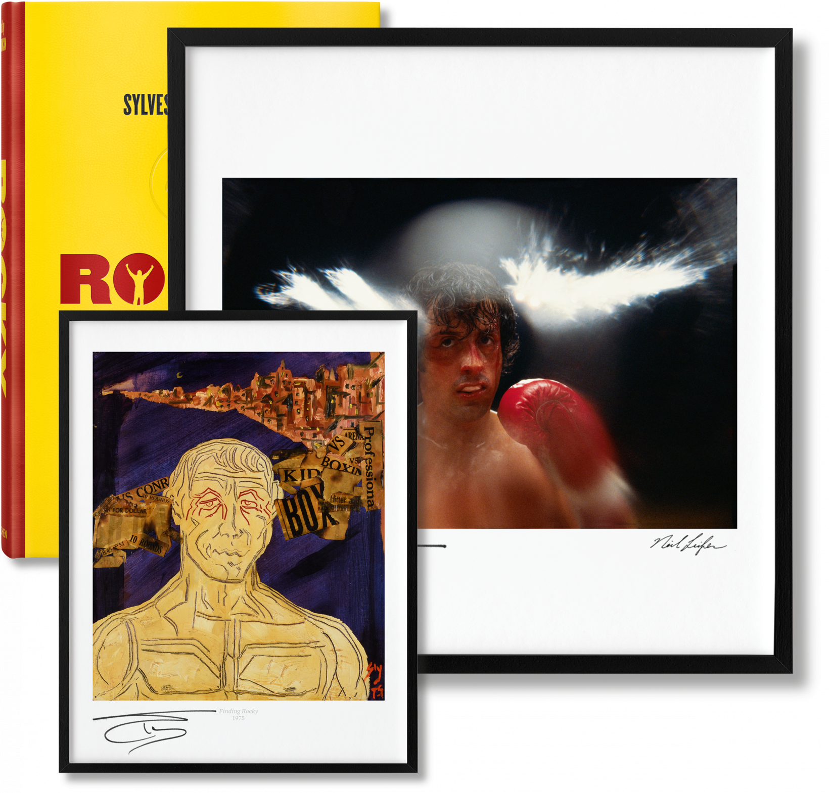 Art Edition (No. 26–50), numbered and signed by Sylvester Stallone, with the pigment print Rocky II (1979) by Neil Leifer, signed by Leifer and Stallone; a signed print of Stallone’s painting Finding Rocky (1975); and a 36-page Rocky notebook facsimile.