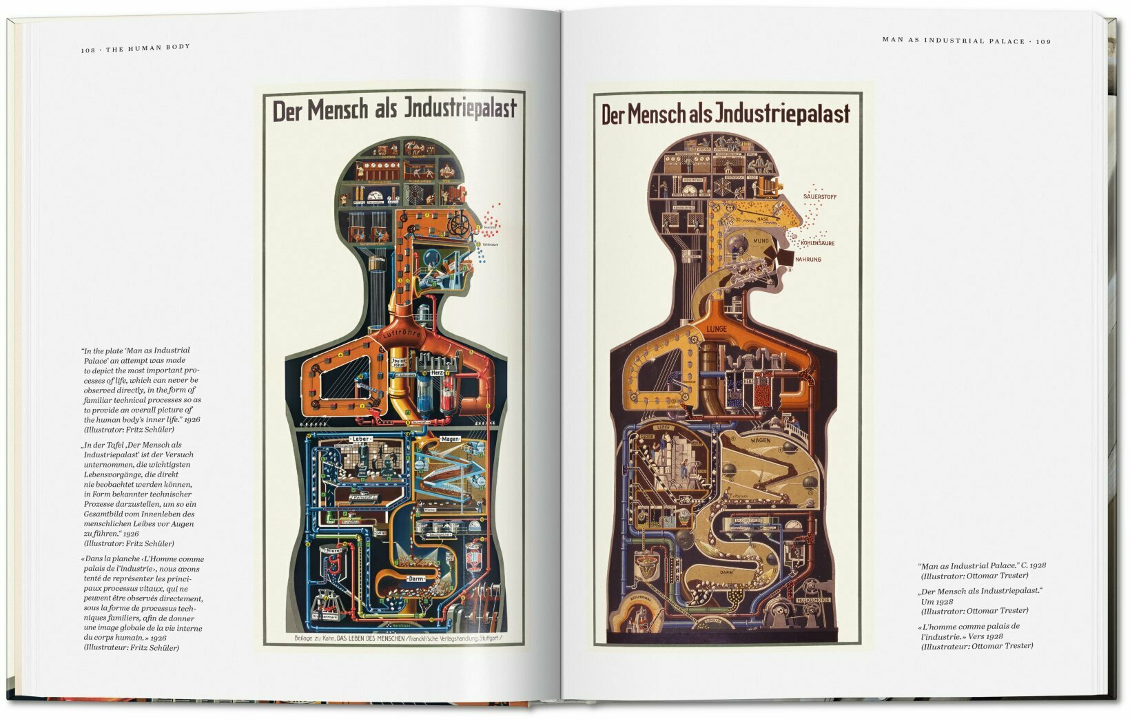 Fritz Kahn (1888–1968) was a German doctor, educator, popular science writer, and information graphics pioneer. Chased out of Germany by the Nazis, who banned and burned his books, Kahn emigrated to Palestine, then France, and finally the United States to continue his life’s work.In this new edition, TASCHEN celebrates Kahn as a creative genius, particularly adept at the visualization of complex scientific ideas. In such works as Man as Industrial Palace, we see how Kahn deployed vivid visual metaphors to demystify science and how his concepts have influenced generations of scientific illustrators, visual communications specialists, and infographic artists through to today.
