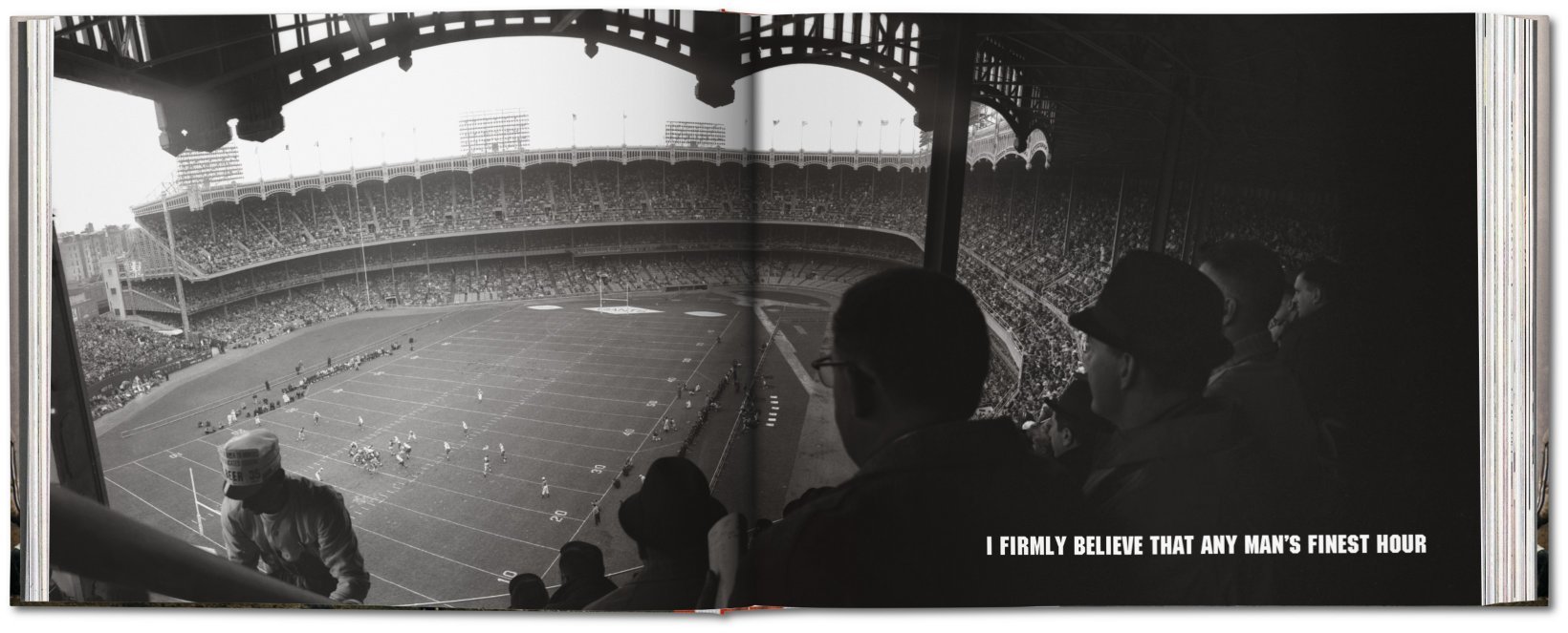Presented in a custom slipcase and limited to 100 numbered copies signed by the artist, this Art Edition (No. 101–200) comes with the pigment print Alan Ameche, 1958 (38 x 30.5 cm / 15 x 12 in.), printed on Museo Portfolio Rag paper.In 1958, sports photographer Neil Leifer took the picture that remains one of his most famous to this day. The day he got the shot—Alan Ameche’s game-winning “Sudden Death” touchdown—was Leifer’s 16th birthday. This game, called “The Greatest Ever Played,” signaled football’s emergence as America’s new national pastime; formerly half-empty stadiums welcomed sold-out crowds seemingly overnight, while football surpassed pro baseball and college football in national television ratings. Starting then, on any given Sunday, Leifer was most likely shooting a football game somewhere in America. His 1961 photo of legendary Giants quarterback Y. A. Tittle dropping back to pass landed Leifer his first cover for Sports Illustrated and cemented his close connection to the sport.