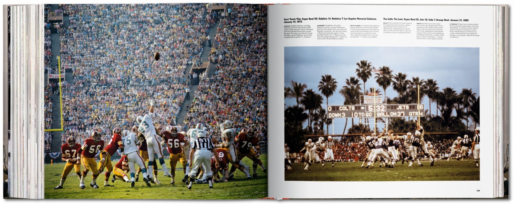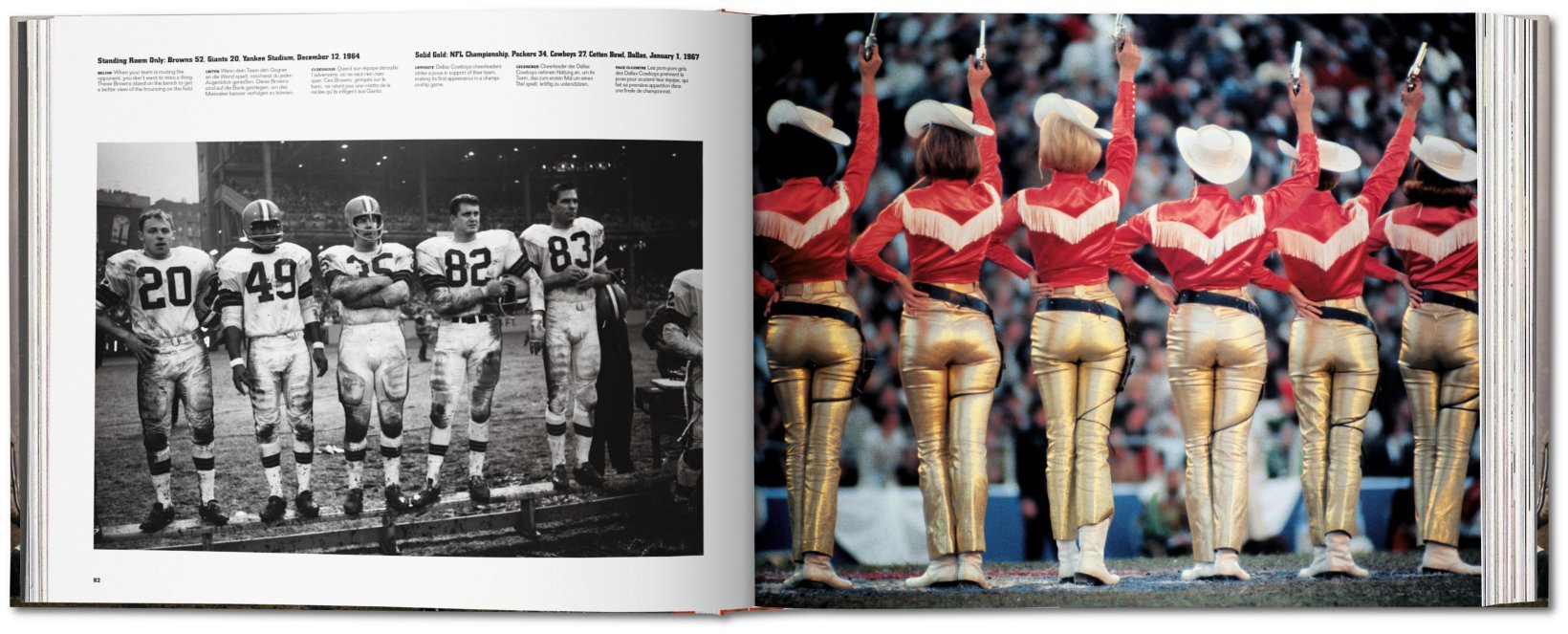 Following an introduction assembled from the best football columns of the era by famed sports columnist Jim Murray, this collection is divided into four chapters: “On Any Sunday” is Leifer’s homage to the game. “The Legends” includes heroes like Johnny Unitas, Jim Brown, Terry Bradshaw, Joe Namath, Dick Butkus, Frank Gifford, and “Mean” Joe Greene. “The Bosses” delves into the victories on and off the field of immortal coaches Vince Lombardi, John Madden, Tom Landry, Weeb Ewbank, and others. Finally, “The Big Game” traces major championship games from 1958 through Super Bowl XII. The in-depth captions put the images into their historical context, making the book highly accessible and informative.
