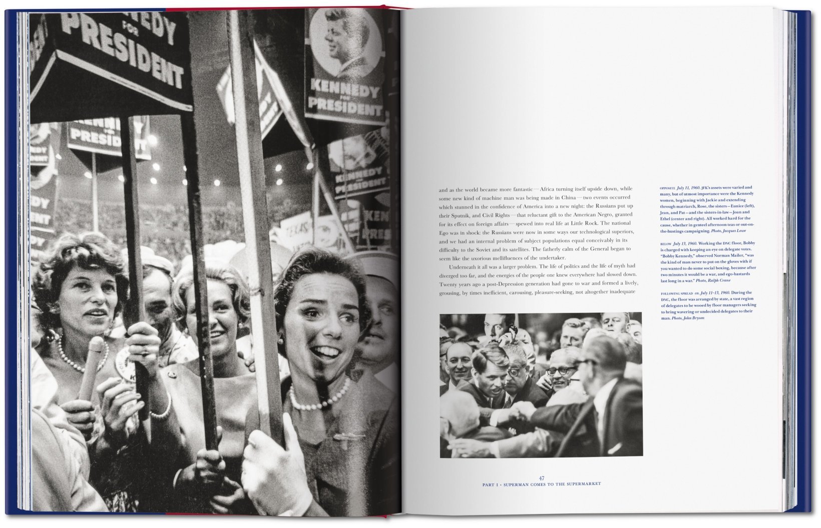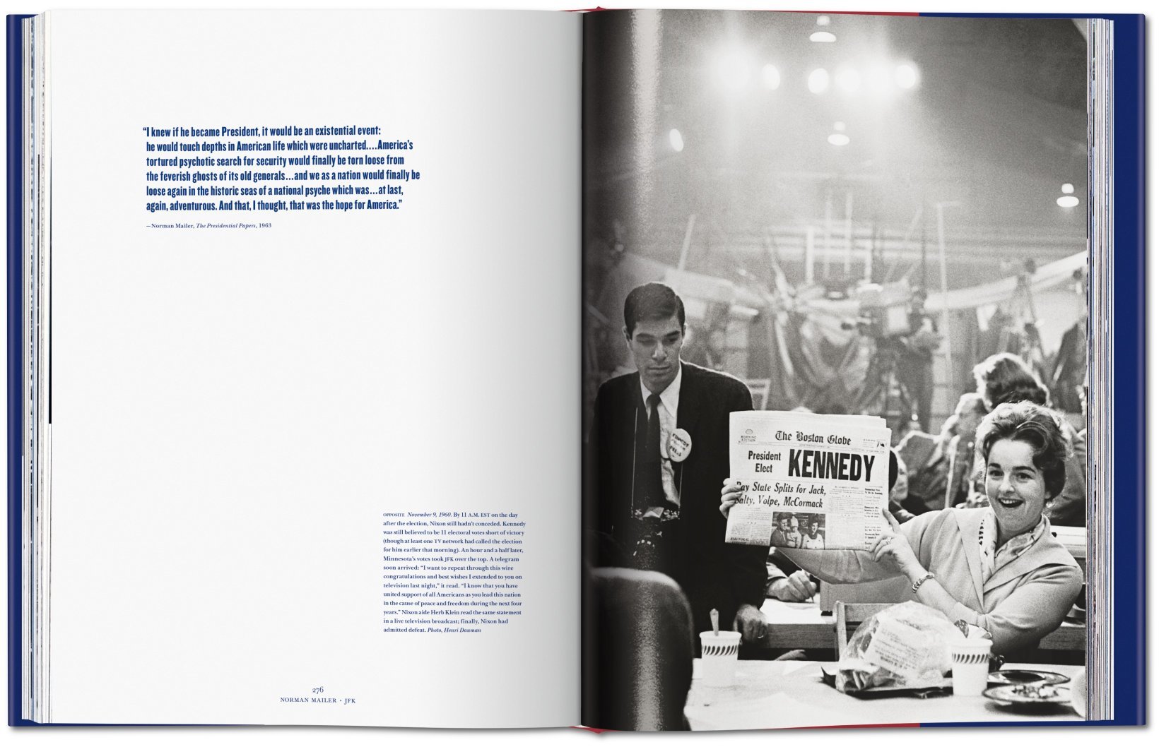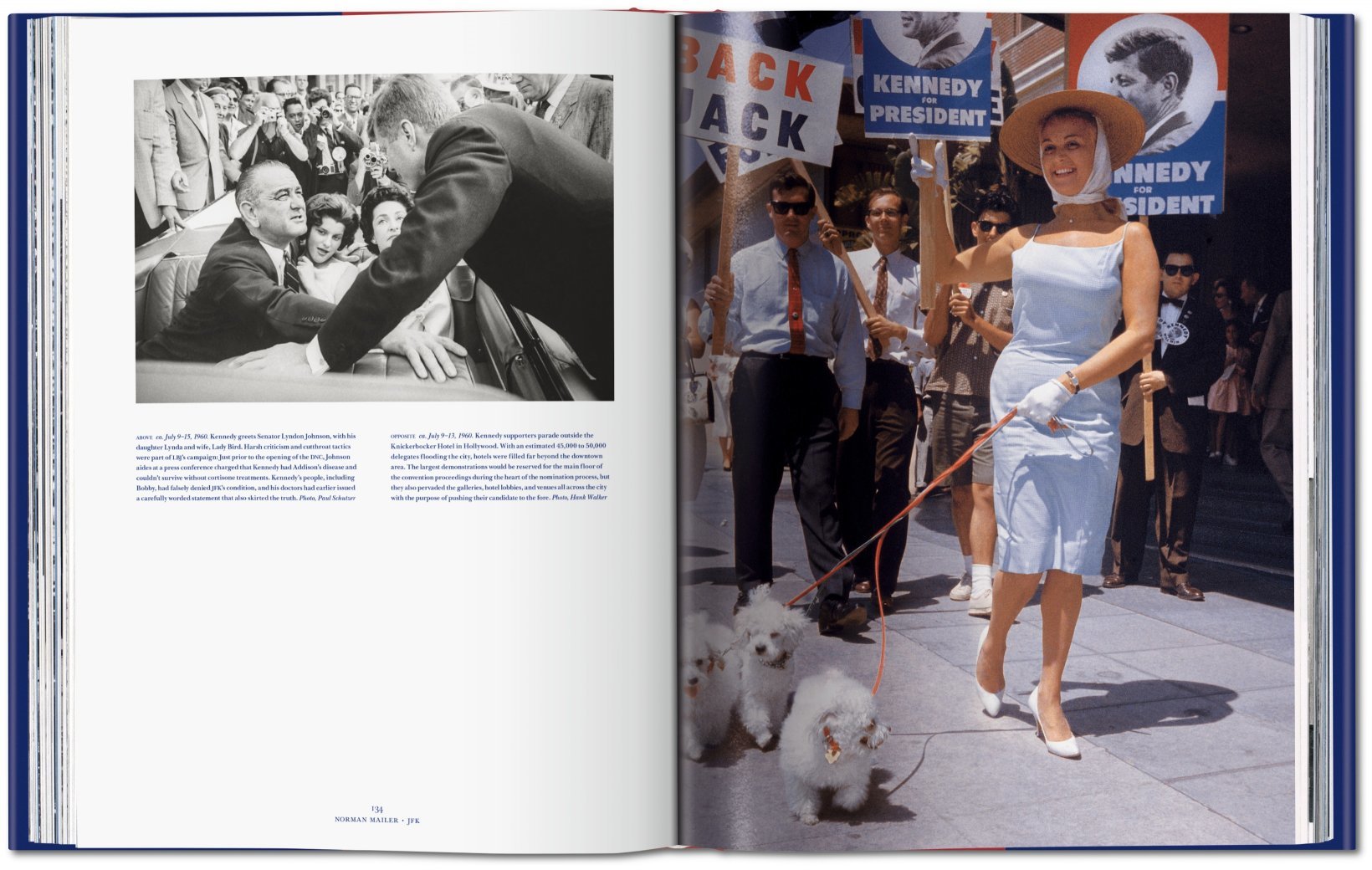 Now, TASCHEN reimagines and interprets this no-holds-barred portrait of Kennedy on his path to the White House, publishing Mailer’s essay in book form alongside 300 photographs that bring the campaign and the candidate’s family to life. These images were captured by some of the great photojournalists of the day—including Cornell Capa, Henri Dauman, Jacques Lowe, Lawrence Schiller, Paul Schutzer, Stanley Tretick, Hank Walker, and Garry Winogrand—providing a fascinating look at the man who declared the ’60s “a time for greatness.”