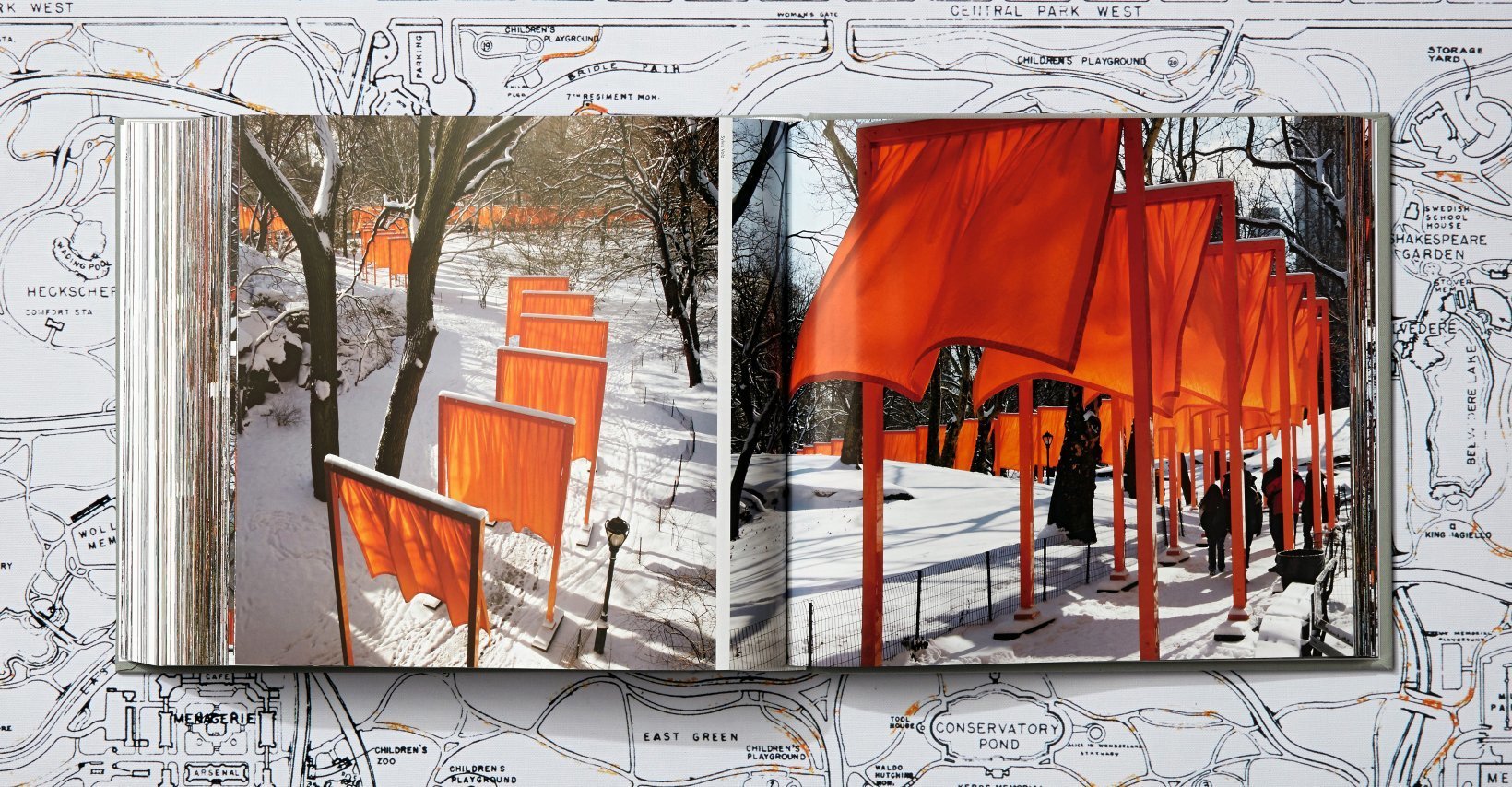 Edición limitada de 5.000 ejemplares, firmados y numerados por Christo y Jeanne-Claude y su fotógrafo Wolfgang VolzFebrero de 2005 significó la instalación efímera de una obra de arte monumental de Christo y Jeanne-Claude en el Central Park de Nueva York. Concebido en 1979 y rechazado por el gobierno municipal de la ciudad de Nueva York en 1981, el proyecto fue aprobado por la administración del alcalde Michael Bloomberg en 2003. La obra de arte consistía en 7503 puertas de vinilo de dieciséis pies de alto con paneles de tela coloreados de azafrán a lo largo de las veintitrés millas de senderos del parque. Vista desde los edificios que rodean al parque, la obra The Gates parecía un río fluido de azafrán, mientras que aquellos que la atravesaban experimentaban la atmósfera de un techo de oro fluido. Financiada completamente por Christo y Jeanne-Claude por medio de su C.V.J. Corporation, The Gates fue montada e instalada por miles de trabajadores asalariados. Finalizada el 12 de febrero de 2005, The Gates permaneció allí durante dieciséis días, tras los cuales fue retirada y los materiales reciclados. La obra de arte fue gratis para todos los visitantes, que continuaron utilizando Central Park durante todo el proceso. Este acontecimiento histórico proporcionó una experiencia memorable y feliz a los neoyorquinos y a los visitantes. Este libro, que documenta el proyecto completo desde sus comienzos en 1979 hasta su culminación en 2005, es el recuerdo perfecto para quienes quieran rememorar esta efímera obra de arte.