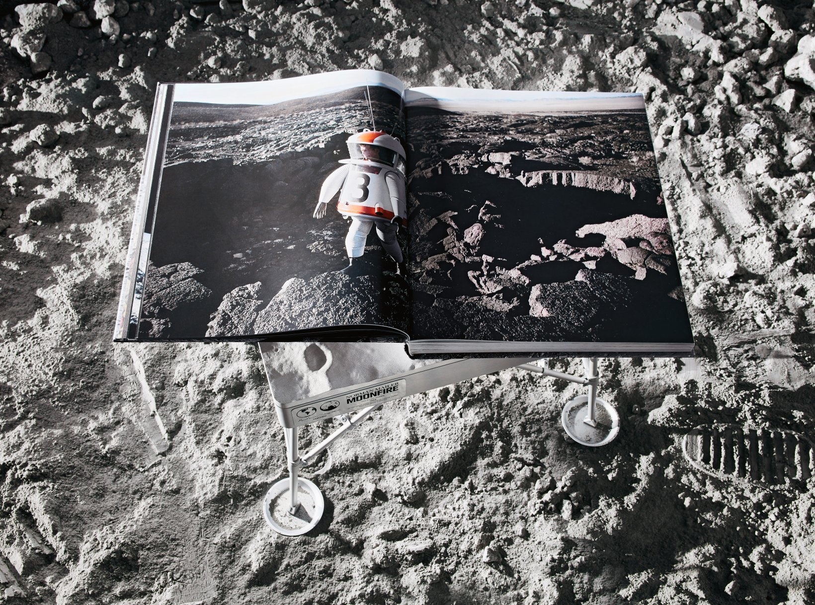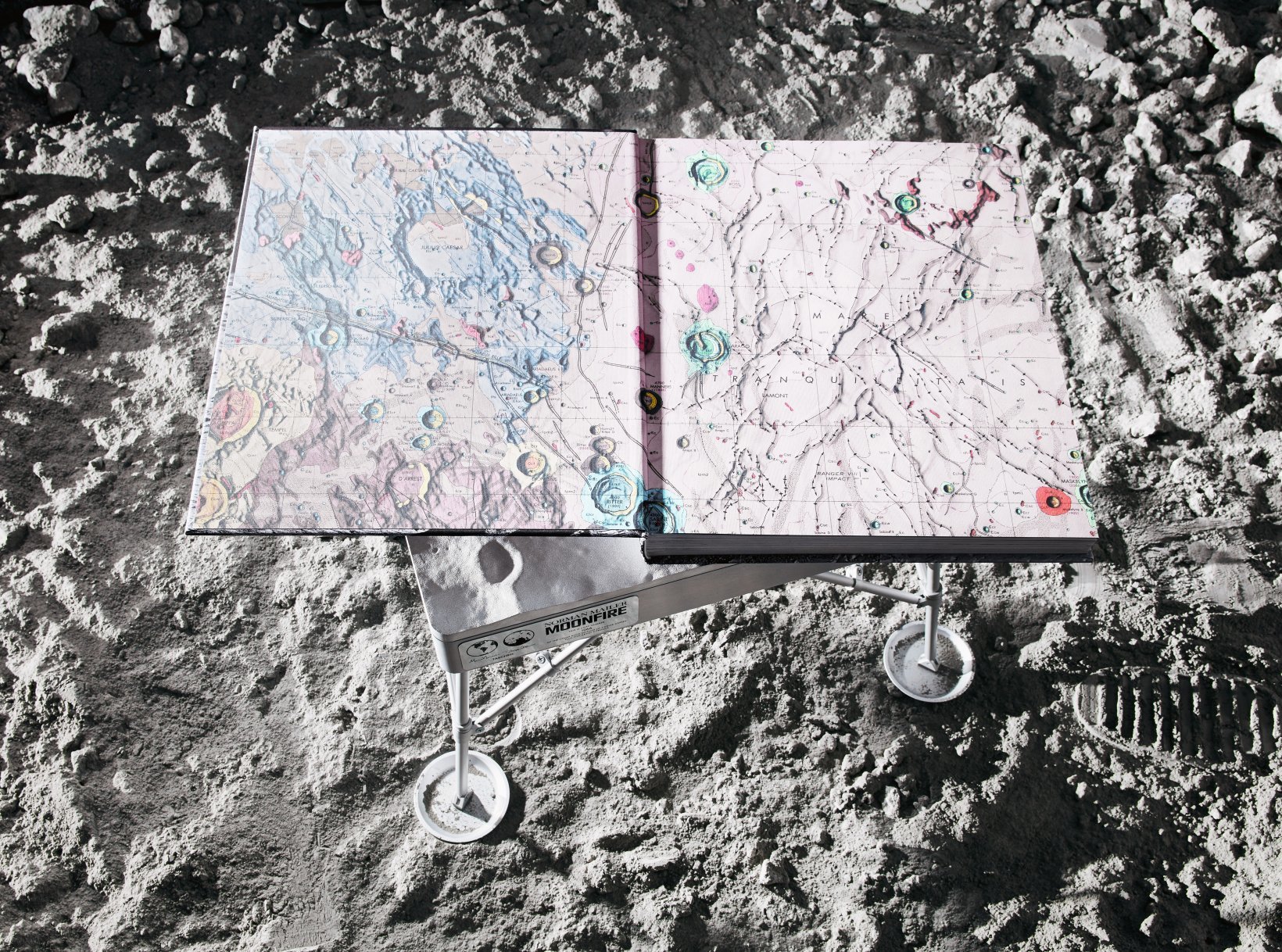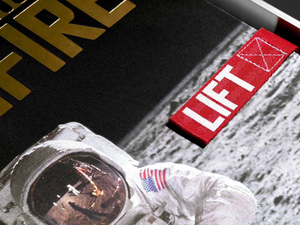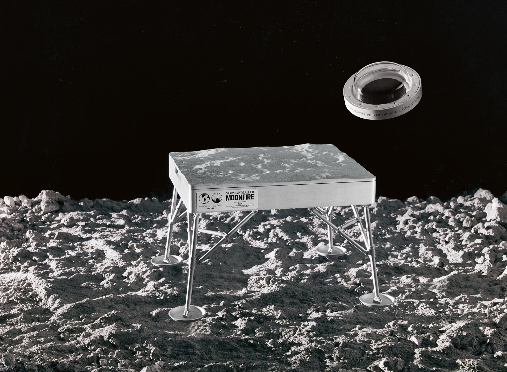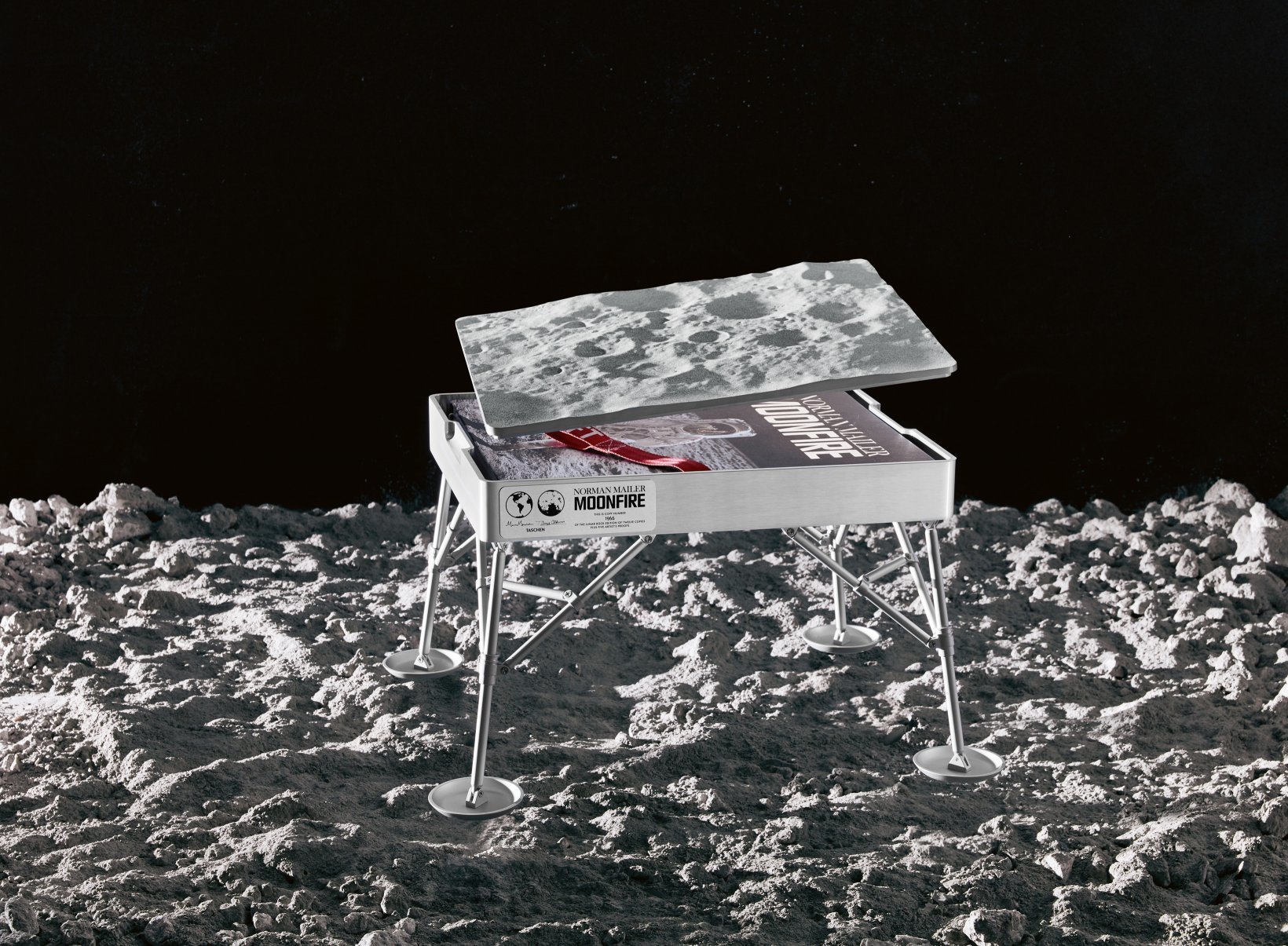 La asombrosa Edición Lunar Rock de Moonfire de Norman Mailer está diseñada por Marc Newson y limitada a tan sólo 12 copias. Cada uno de estos ejemplares únicos se presenta en un estuche de aluminio modelado a partir de una topografía tridimensional real de la Luna e incluye un espécimen único de roca lunar. Acompaña a esta edición un espécimen de brecha feldespática mezclada con basalto fresco y sólido. Se trata de la masa principal de un meteorito lunar, algo muy poco corriente.