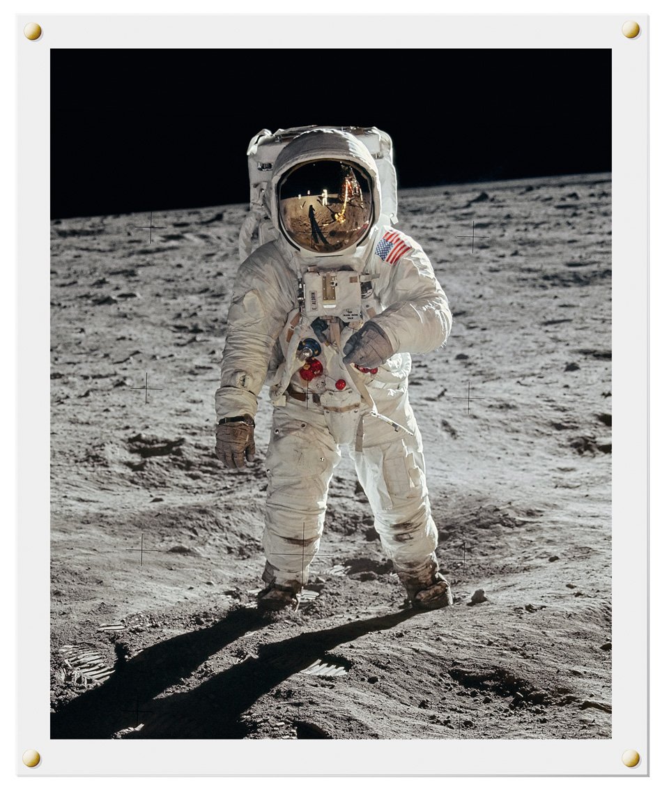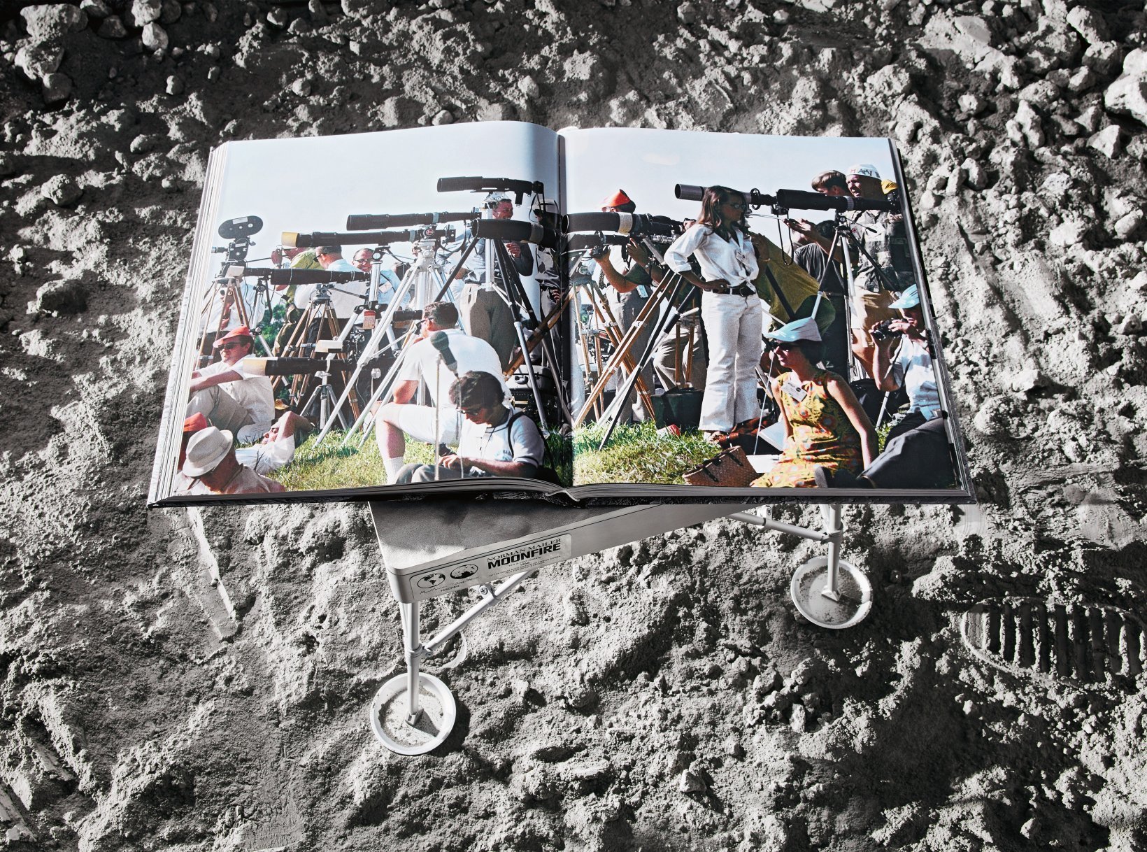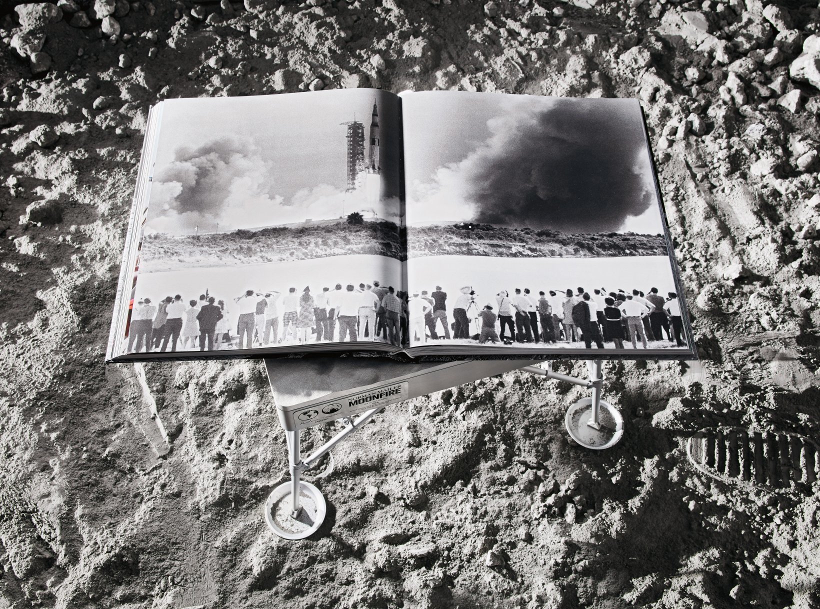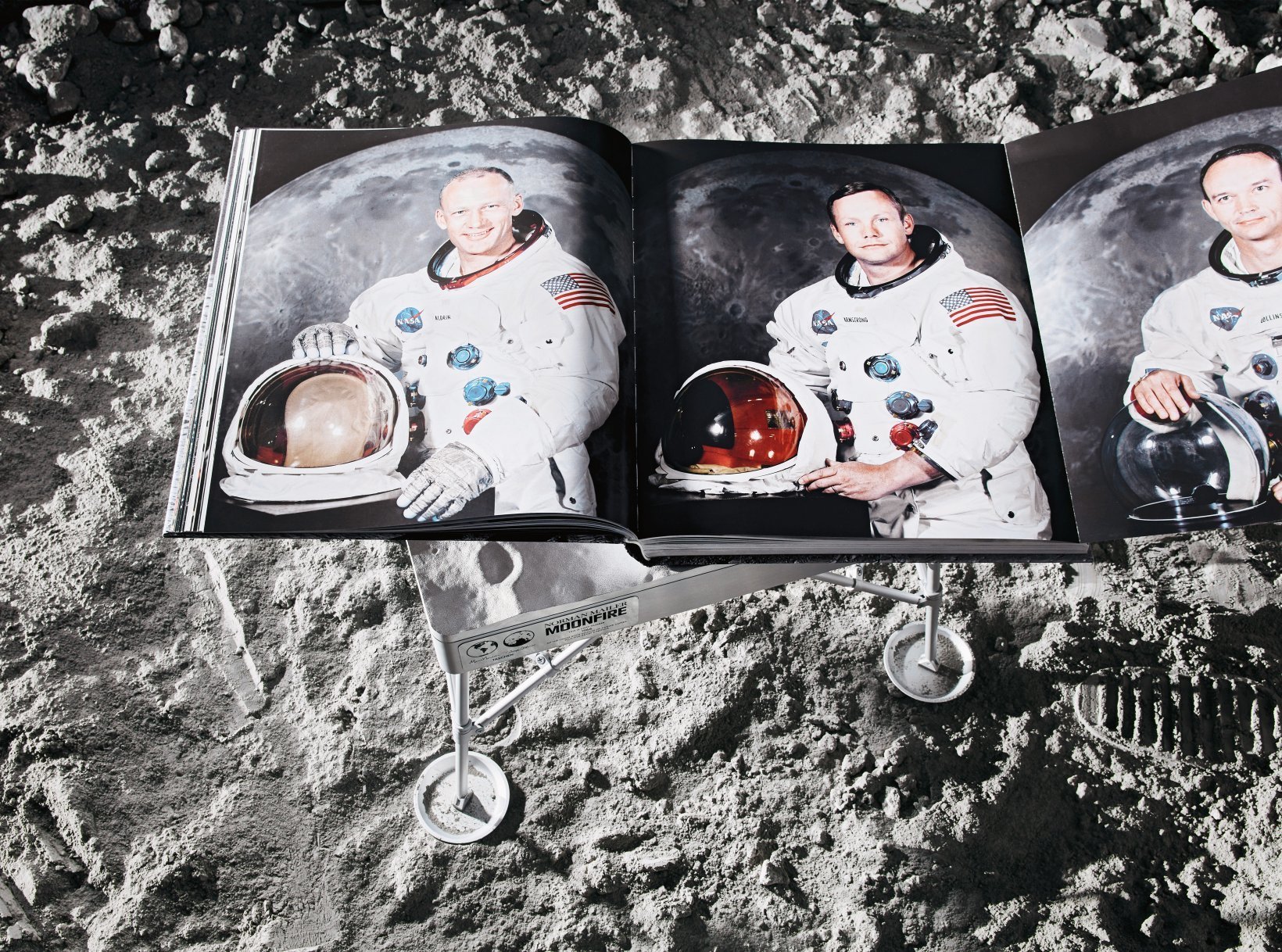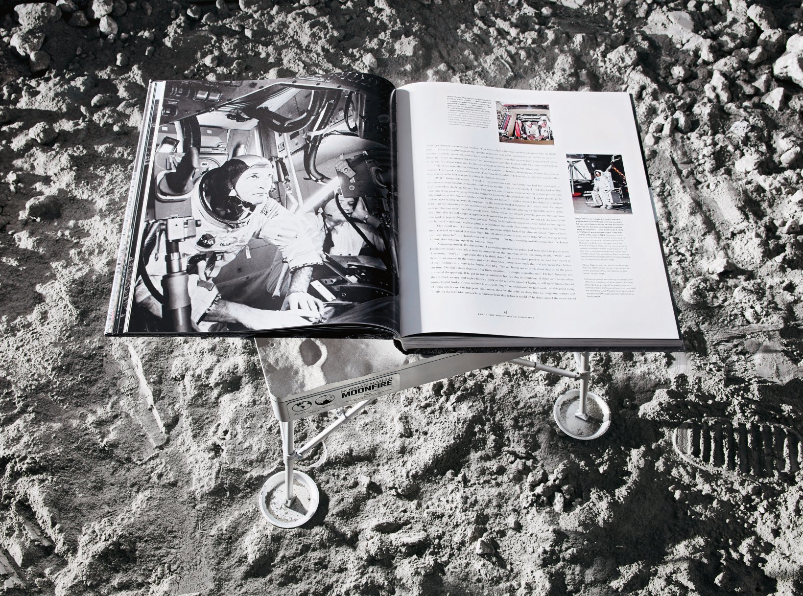 Estuche de aluminio, cápsula con roca lunar y lámina enmarcada de 32,5 x 40 cm, volumen de tapa dura de 36,5 x 44 cm con 4 desplegables, 348 páginas
