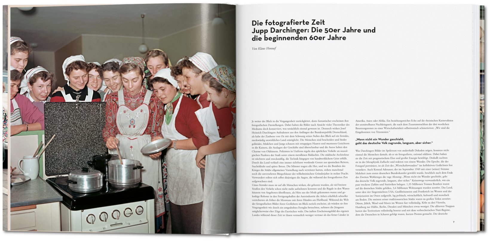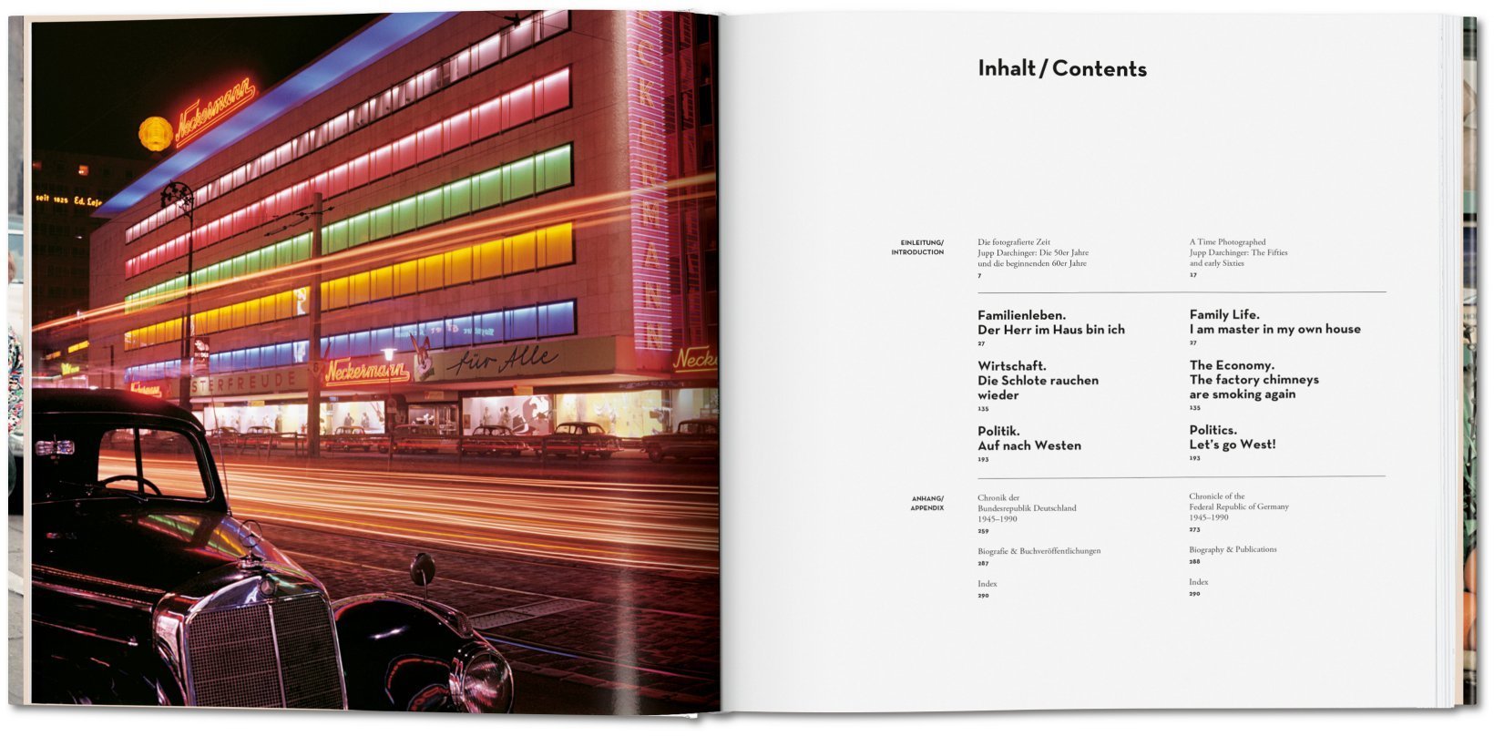 Un documento visual crucial de la historia alemana, las imágenes de Josef Heinrich Darchinger de la Alemania Occidental de posguerra desvelan una era extraordinaria, atrapada entre el crecimiento y la penuria continua, entre lugares bombardeados y otros de nueva construcción, entre la placided alemana y la amenaza constante de la Guerra Fría.